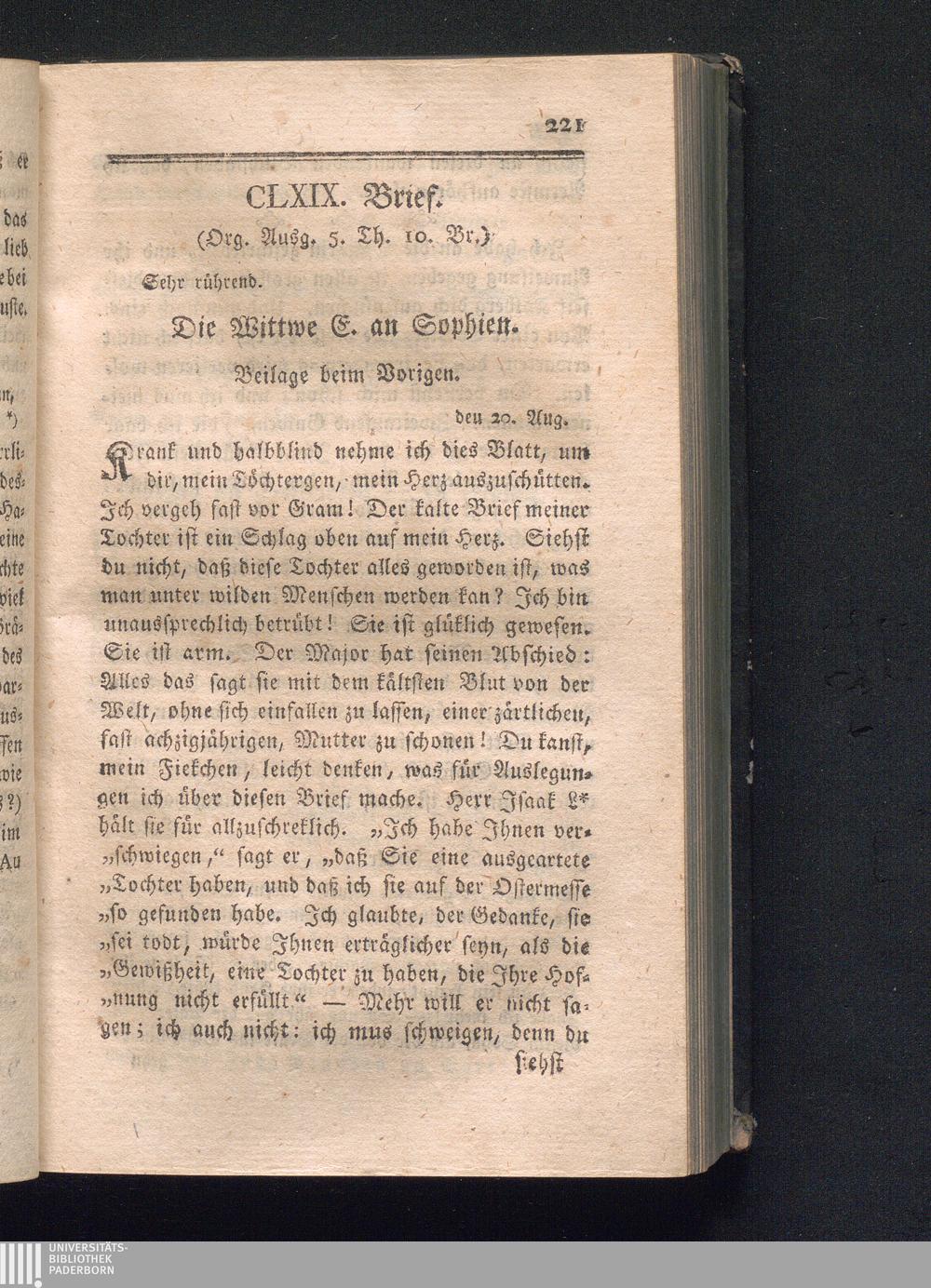 CLXIX. Brief. Sehr rührend.