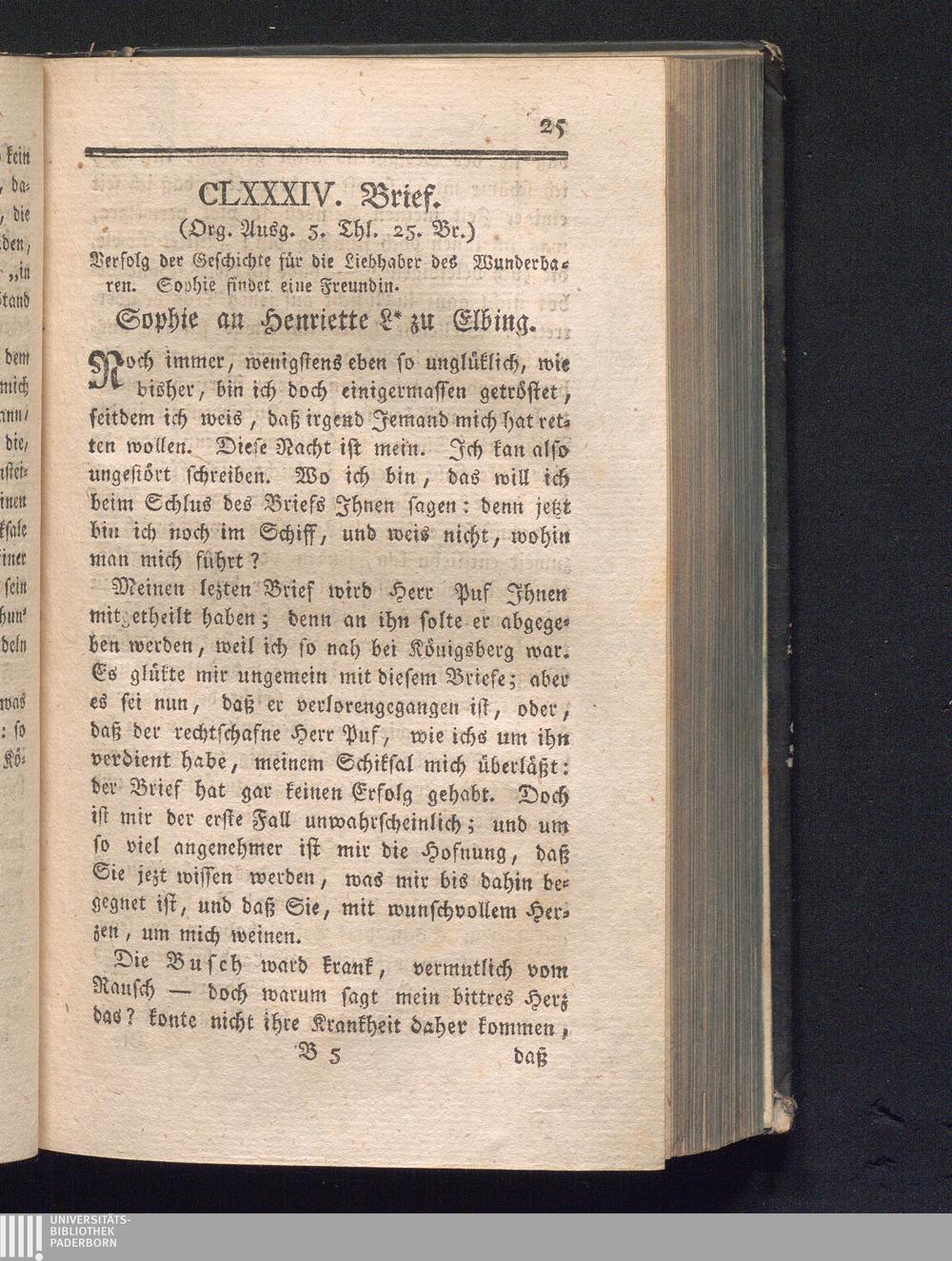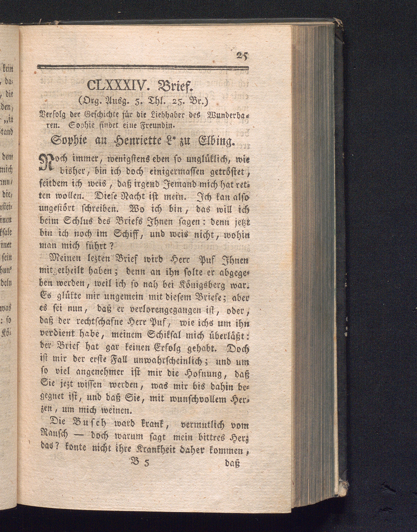 CLXXXIV. Brief. Verfolg der Geschichte für die Liebhaber des Wunderbaren. [et]c.