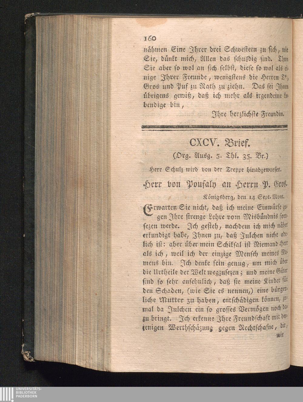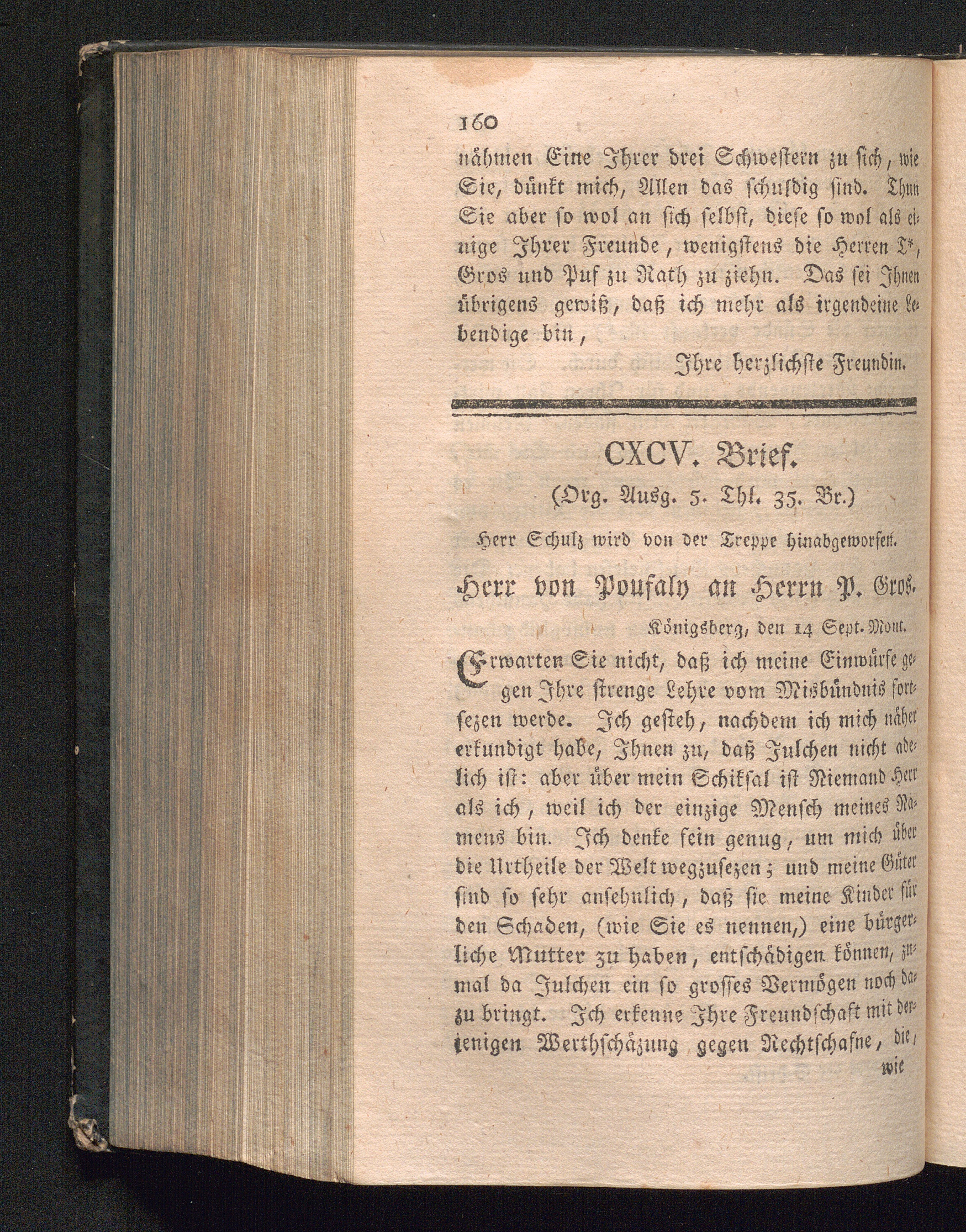 CXCV. Brief. Herr Schulz wird von der Treppe hinabgeworfen.