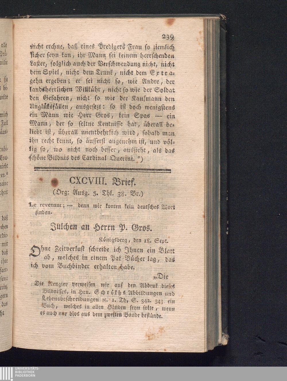 CXCVIII. Brief. Le Revenant; - denn wir konten kein deutsches Wort finden.