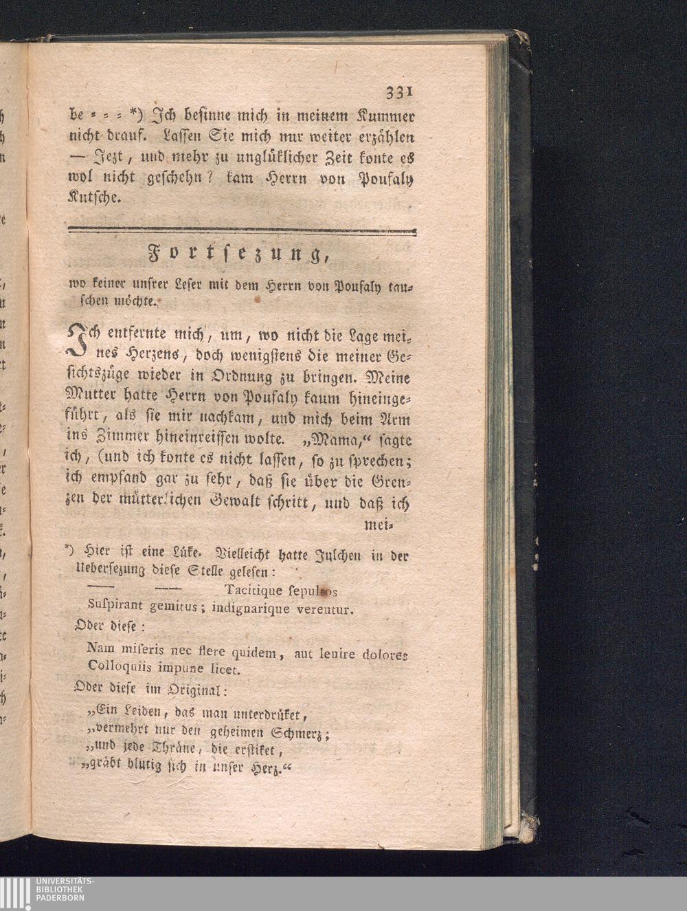 Fortsezung, wo keiner unsrer Leser mit dem Herrn von Pousaly tauschen möchte.