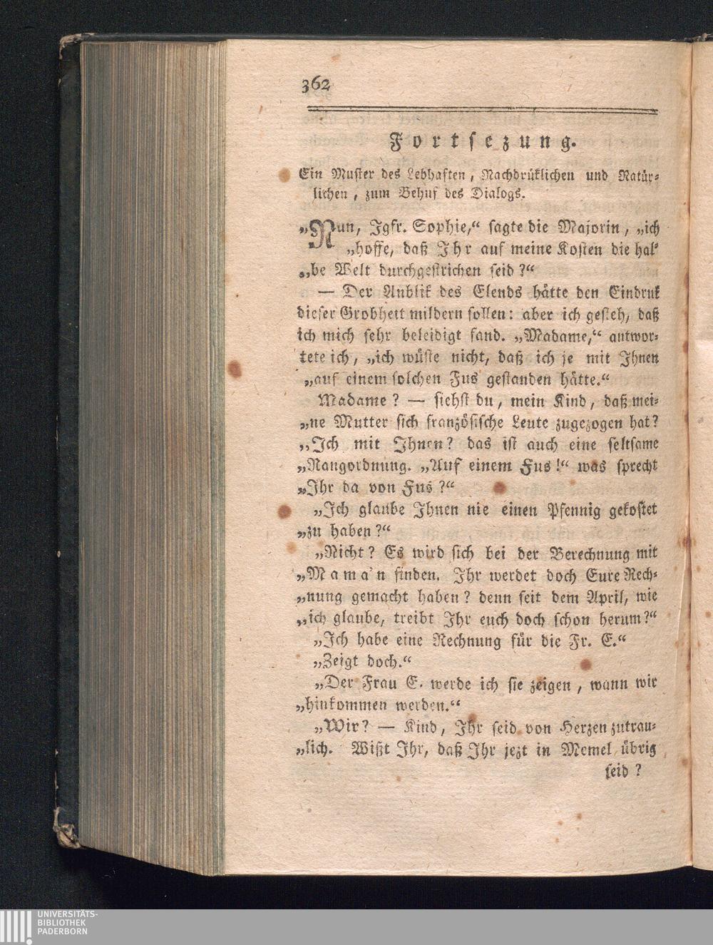 Fortsezung. Ein Muster des Lebhaften, Nachdrüklichen und Natürlichen, zum Behuf des[...]