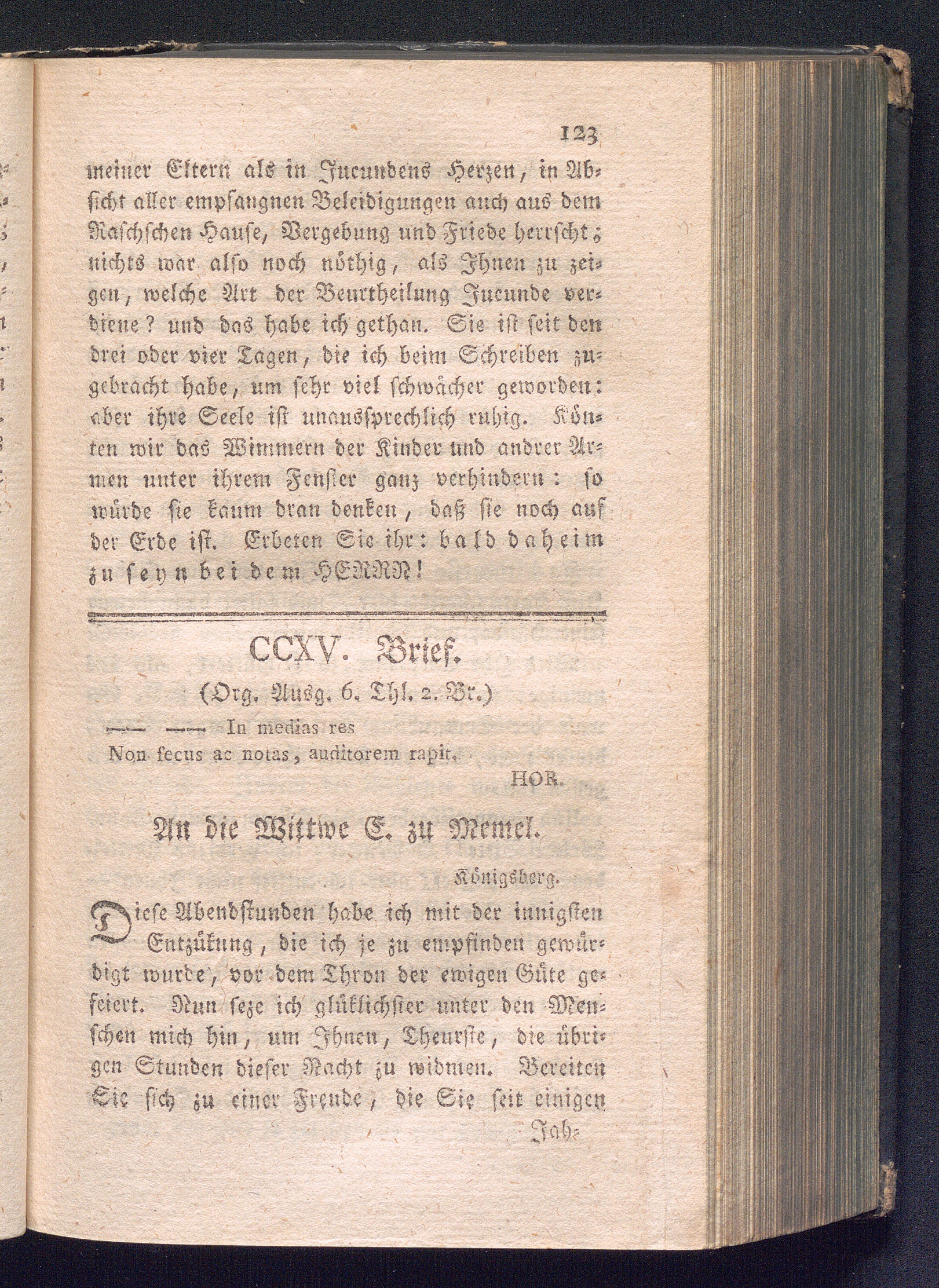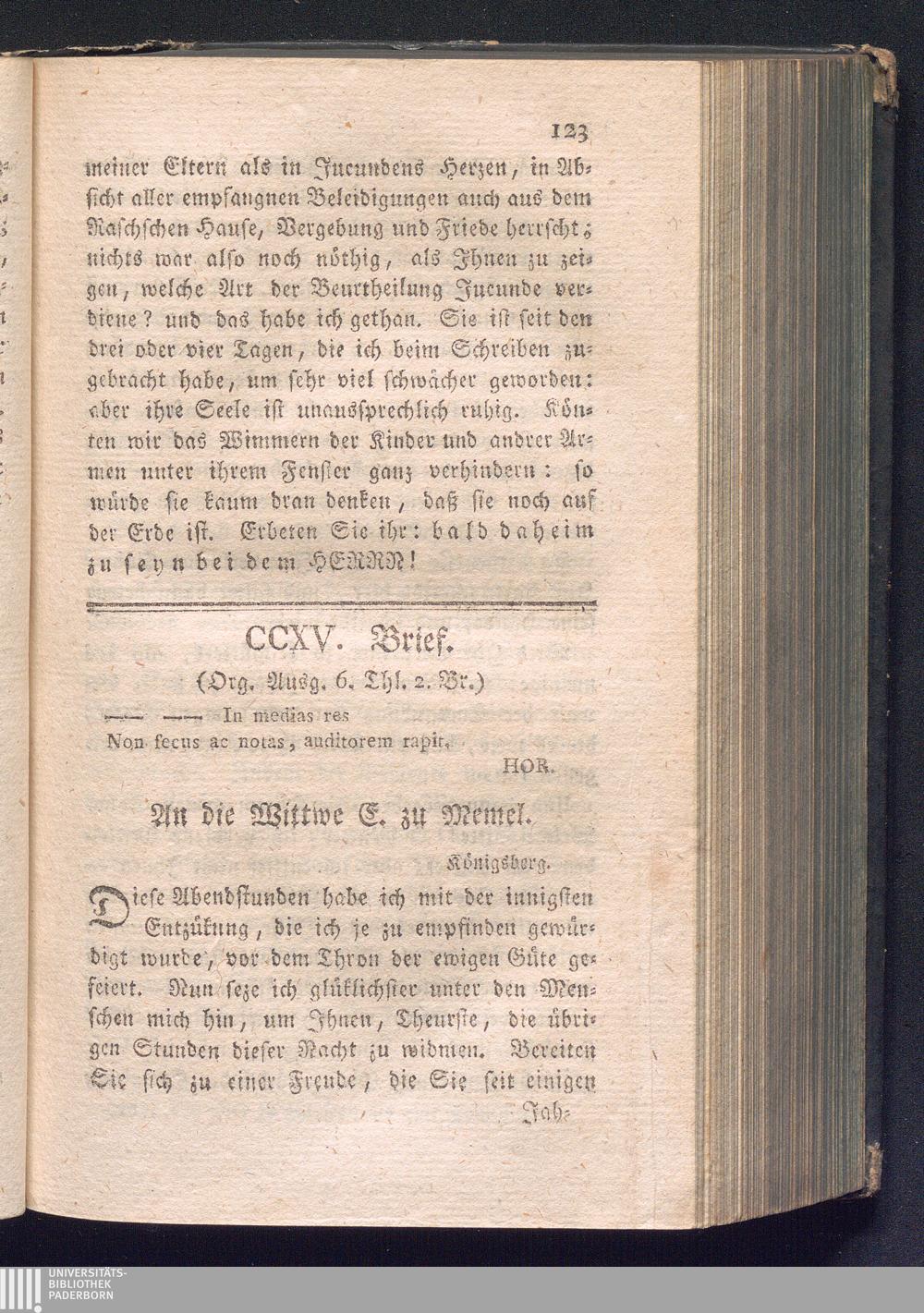 CCXV. Brief. In medias res non secus ac notas, auditorem rapit.