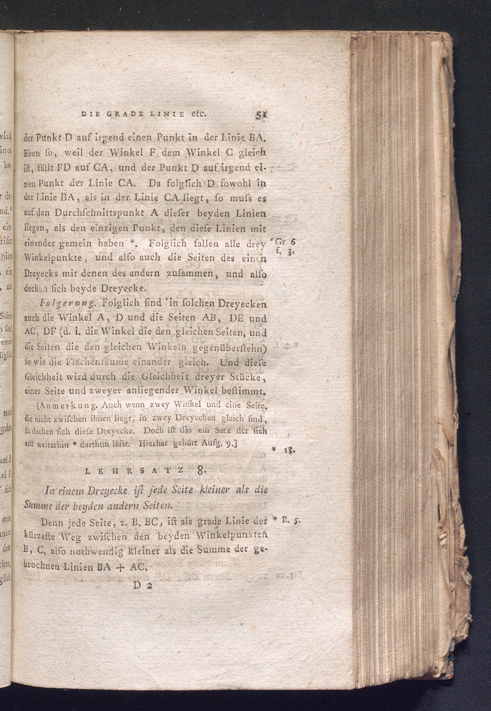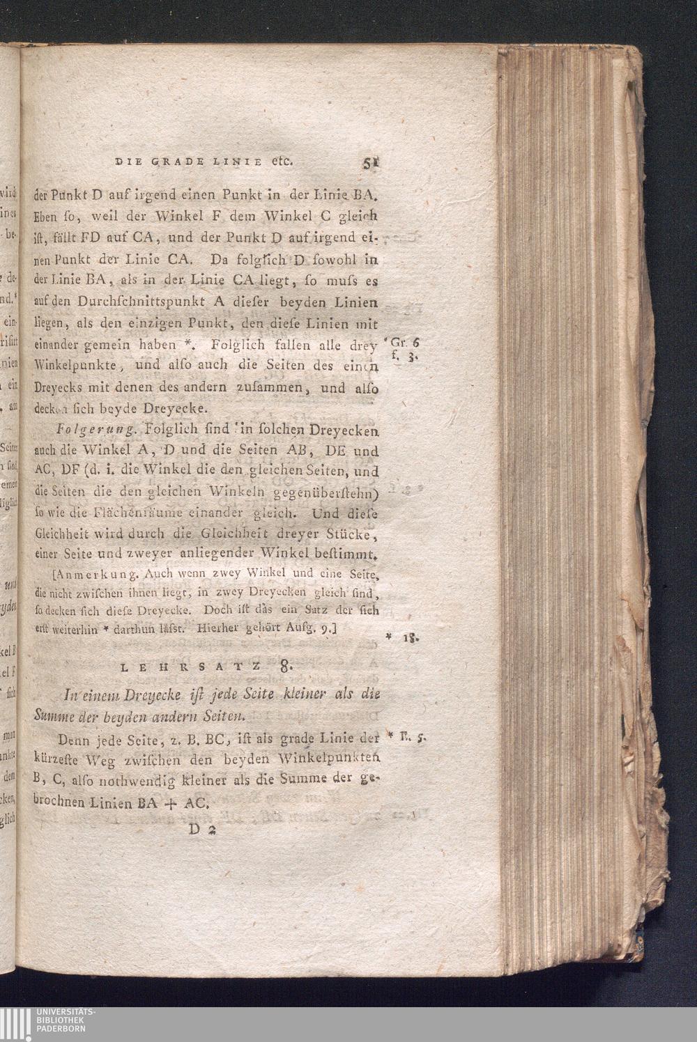 Lehrsatz 8. In einem Dreyecke ist jede Seite kleiner als die Summe der beyden andern[...]