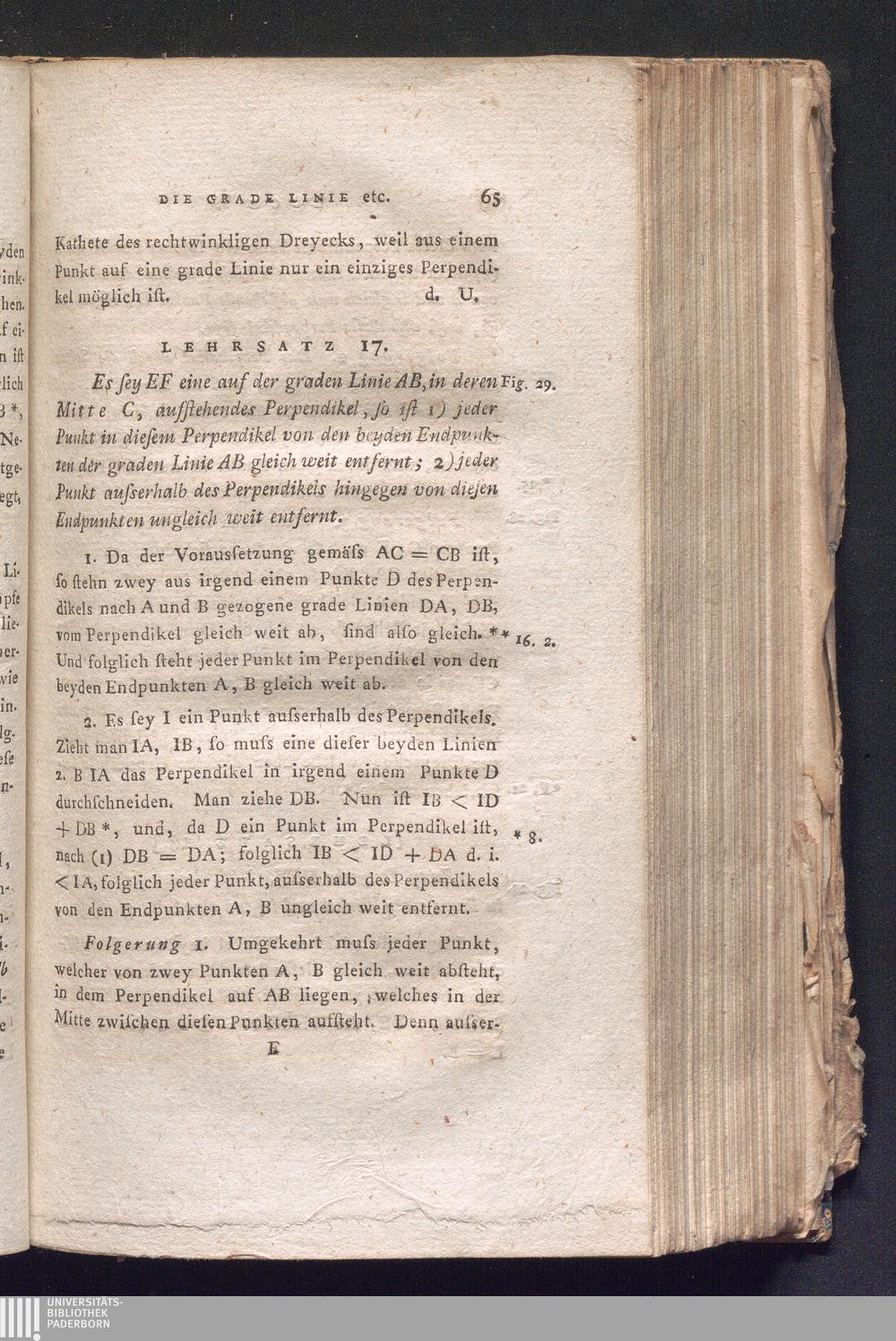 Lehrsatz 17. Es sey EF eine auf der graden Linie AB, in deren Mitte C, aufstehendes[...]