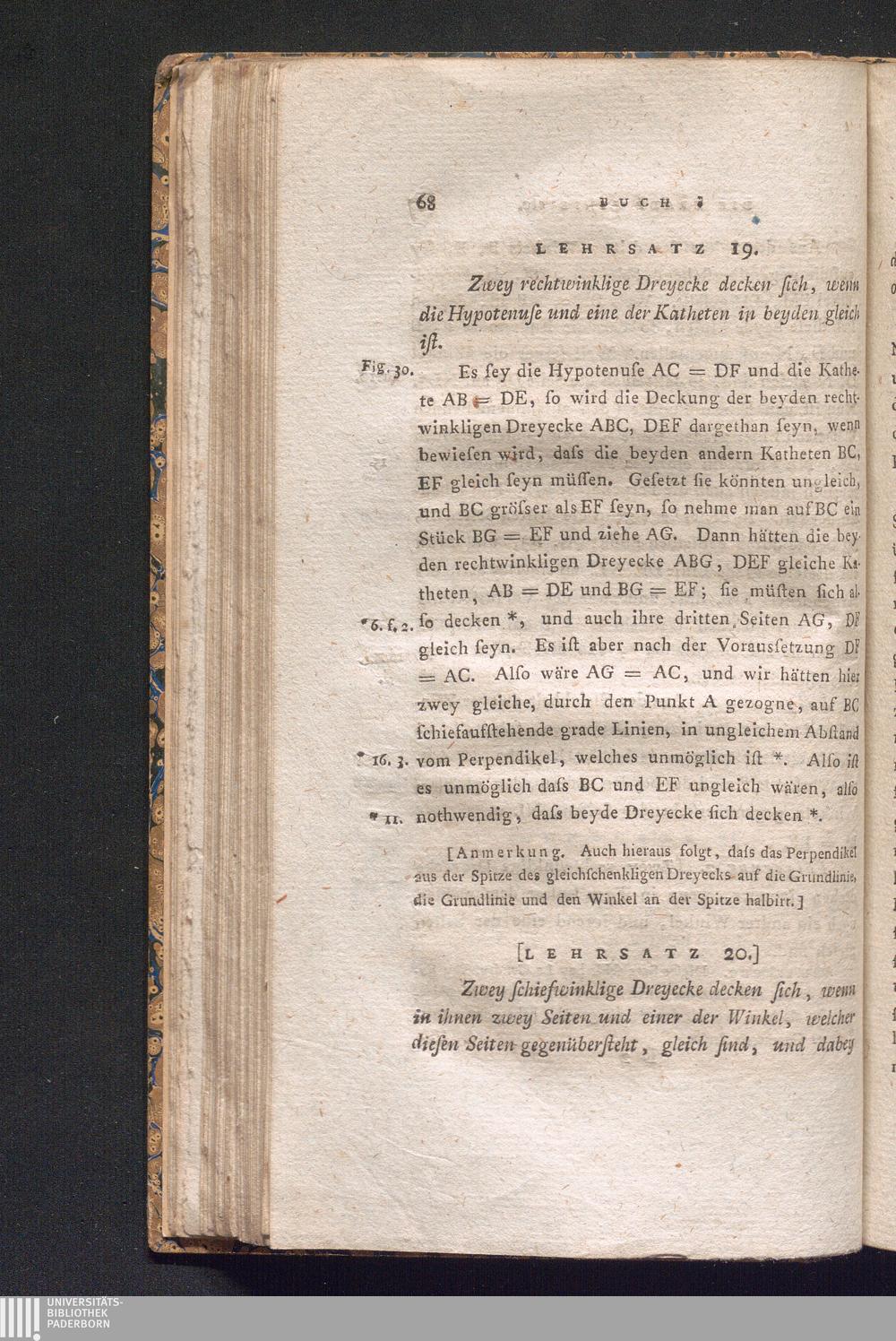 [Lehrsatz 20.] Zwey schiefwinklige Dreyecke decken sich, wenn in ihnen zwey Seiten[...]