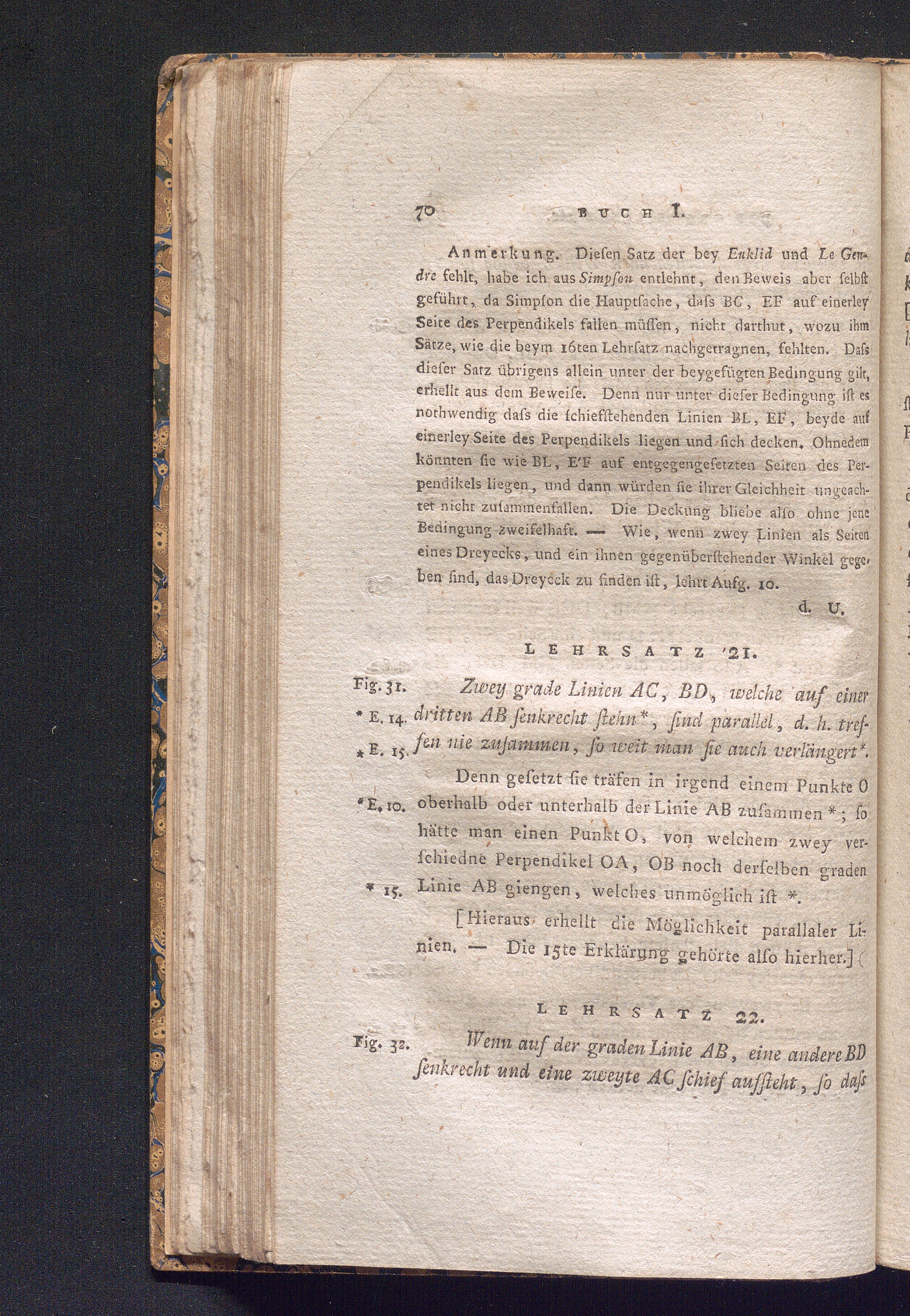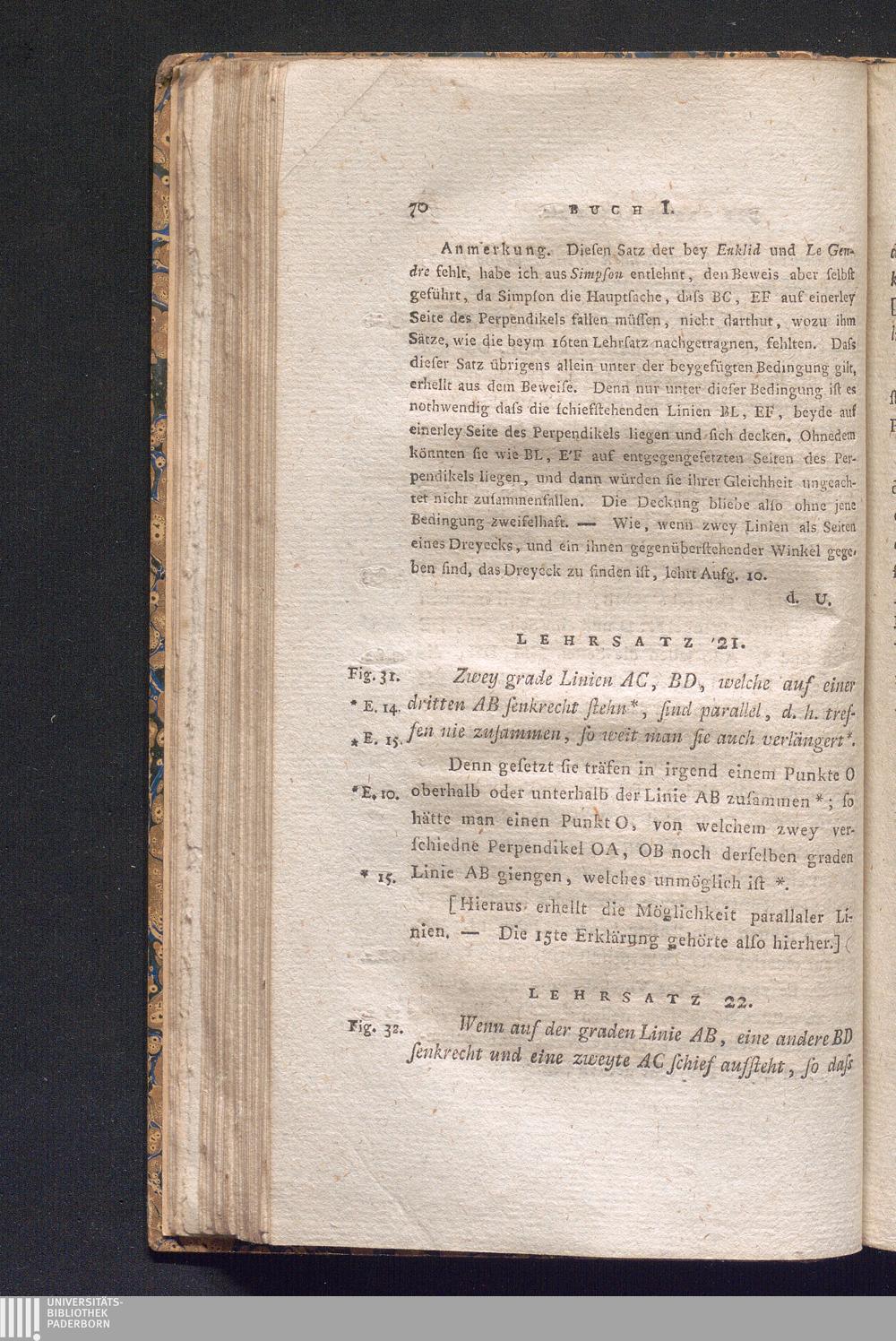 Lehrsatz 22. Wenn auf der geraden Linie AB, eine andere BD senkrecht und eine zweyte[...]
