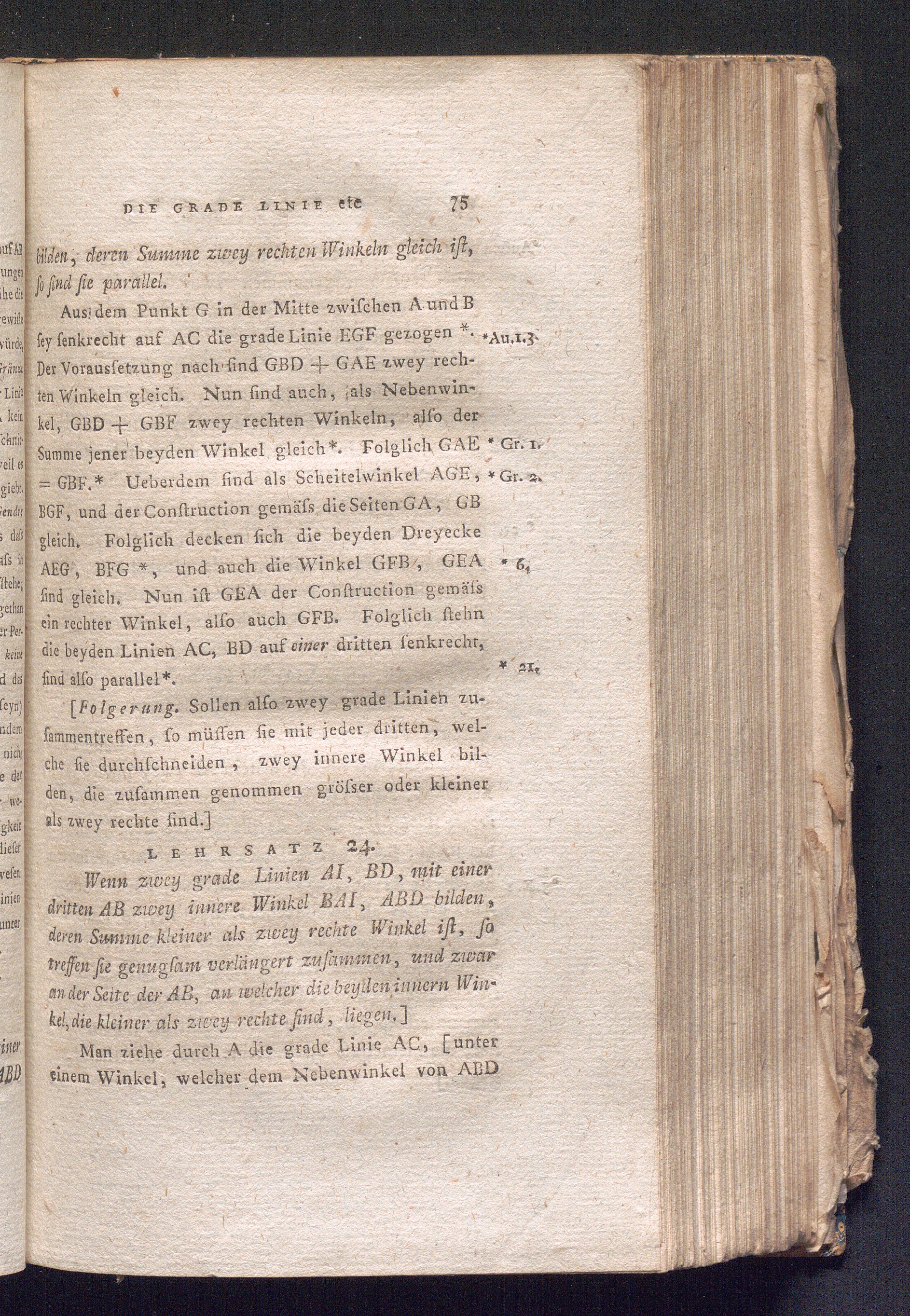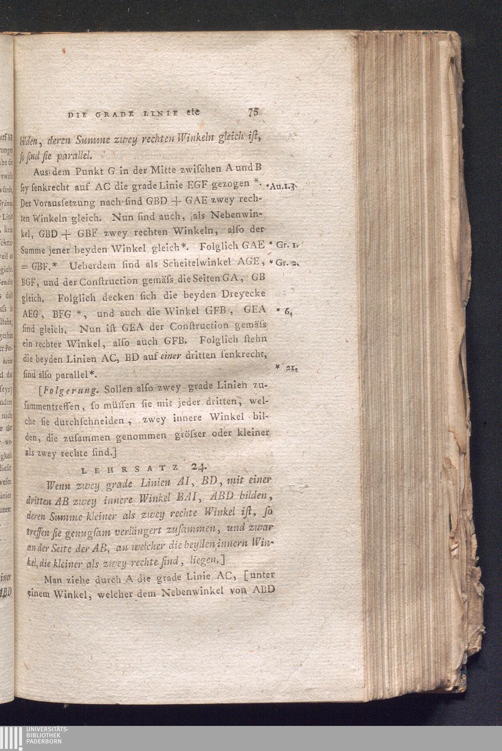 Lehrsatz 24. Wenn zwey grade Linien AI, BD, mit einer dritten AB zwey innere Winkel[...]