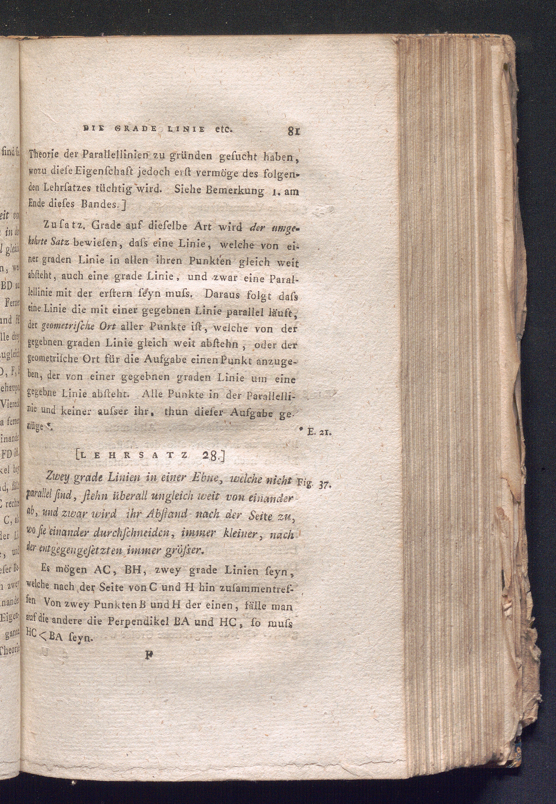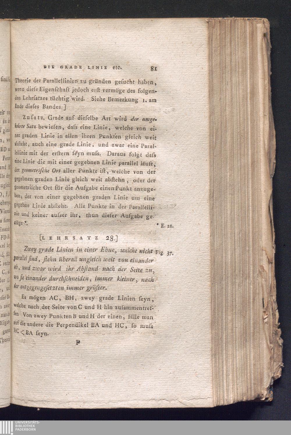 [Lehrsatz 28.] Zwey grade Linien in einer Ebne, welche nicht parallel sind, stehn[...]