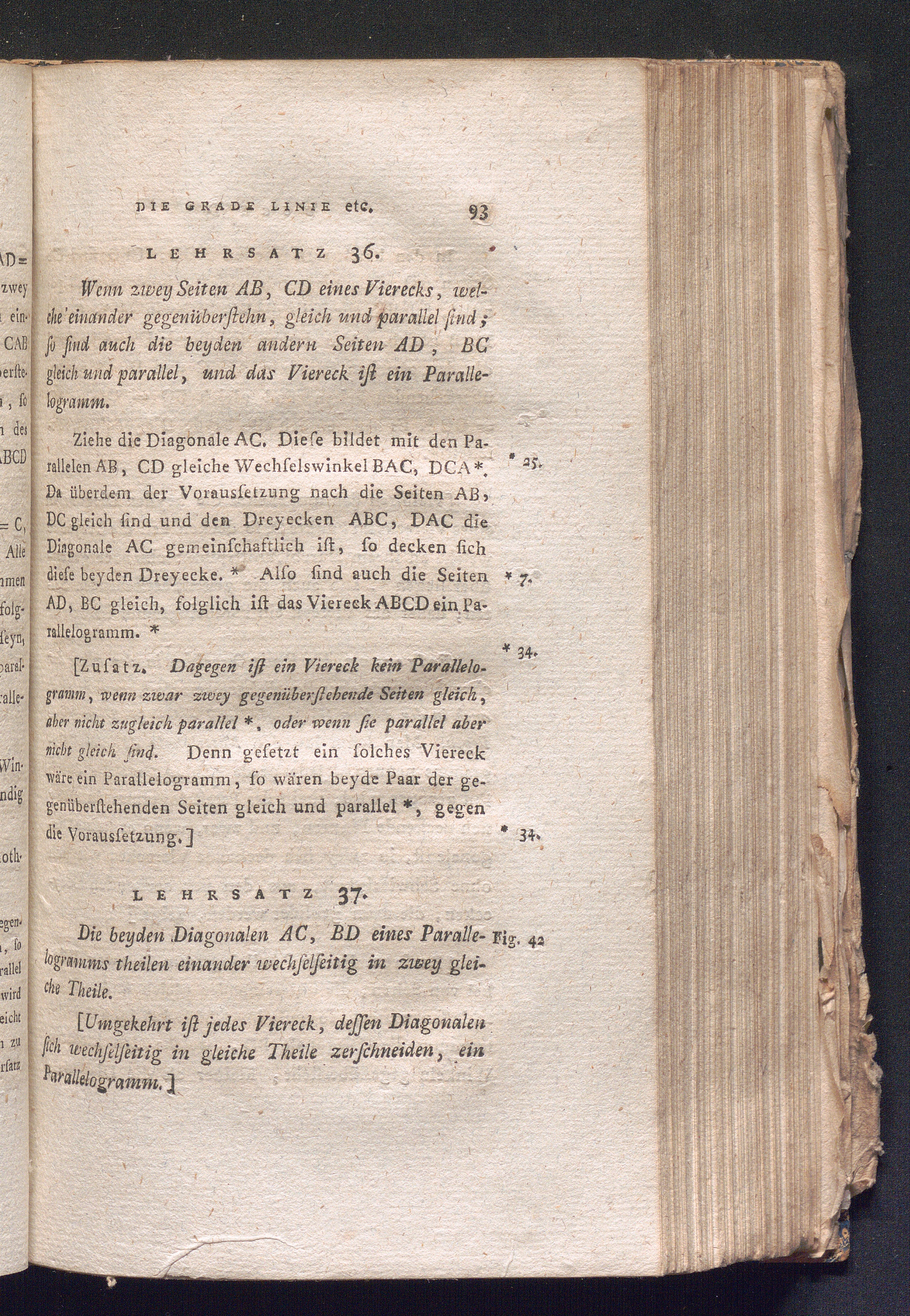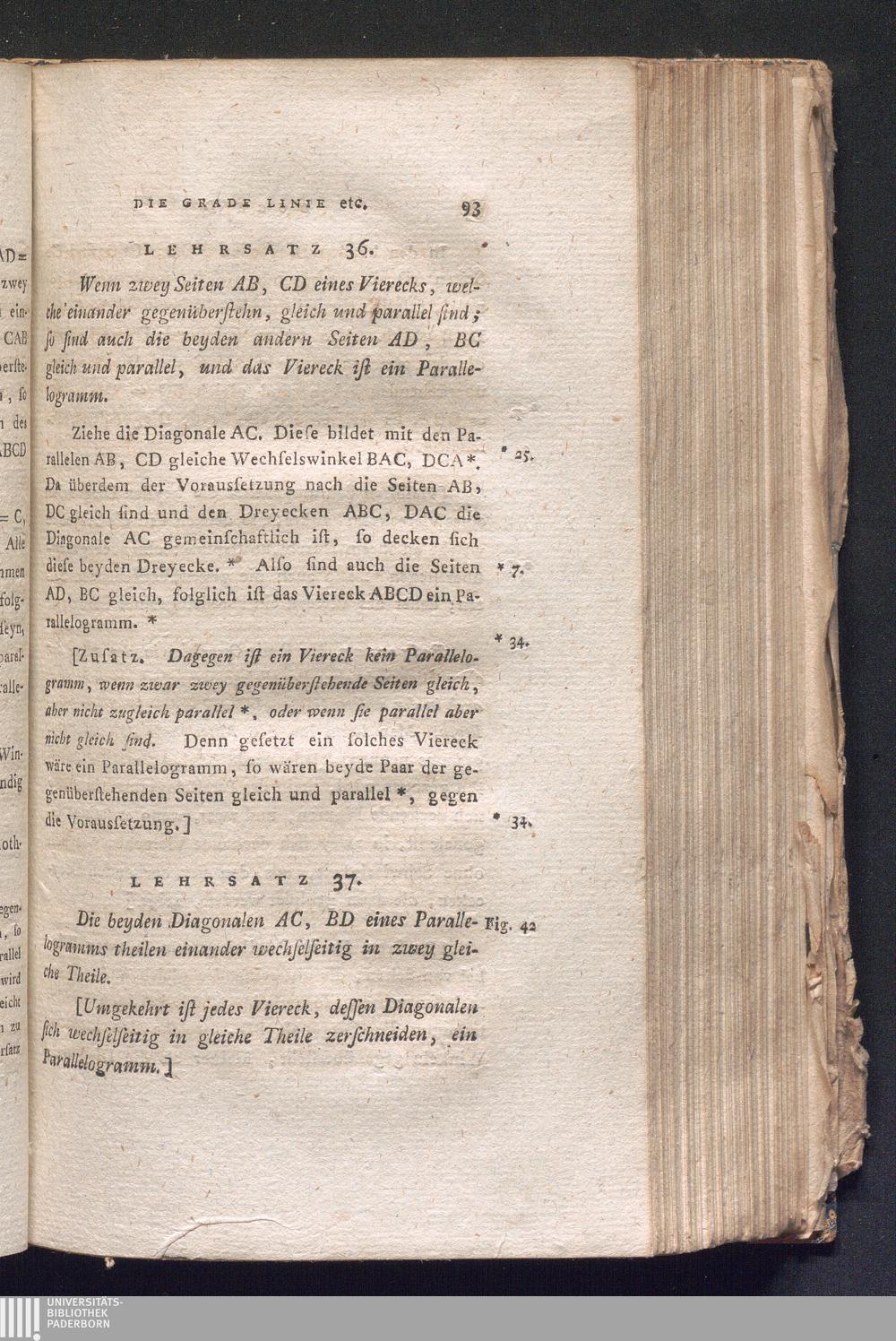 Lehrsatz 37. Die beyen Diagonalen AC, BD eines Parallelogramms theilen einander wechselseitig[...]