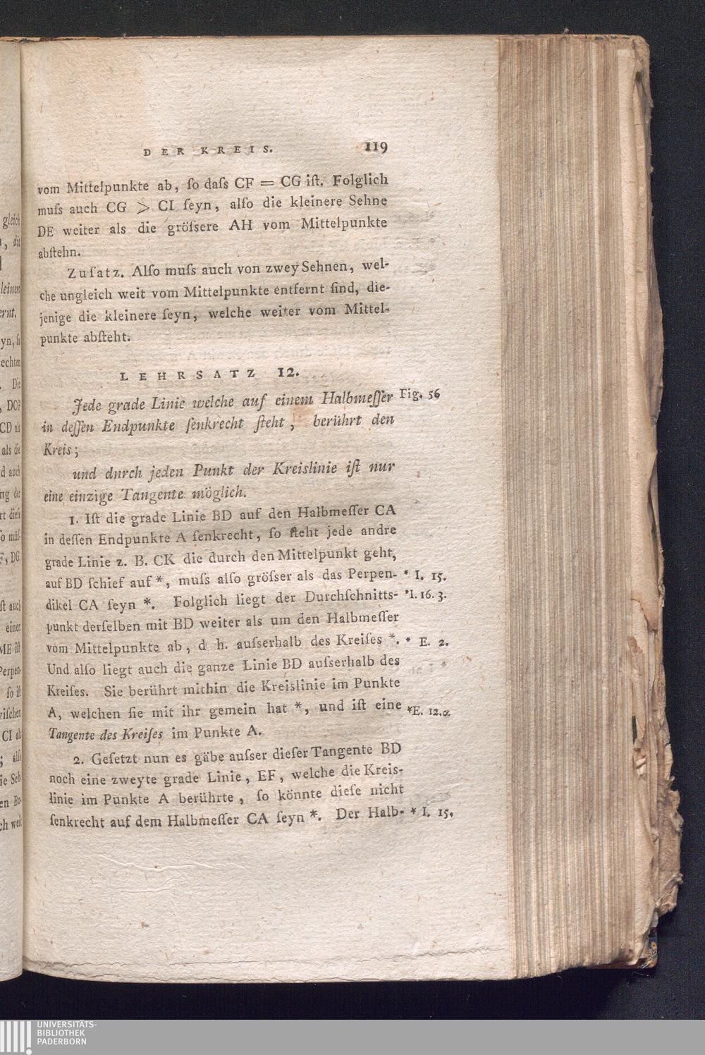 Lehrsatz 12. Jede grade Linie welche auf einem Halbmesser in dessen Endpunkte senkrecht[...]
