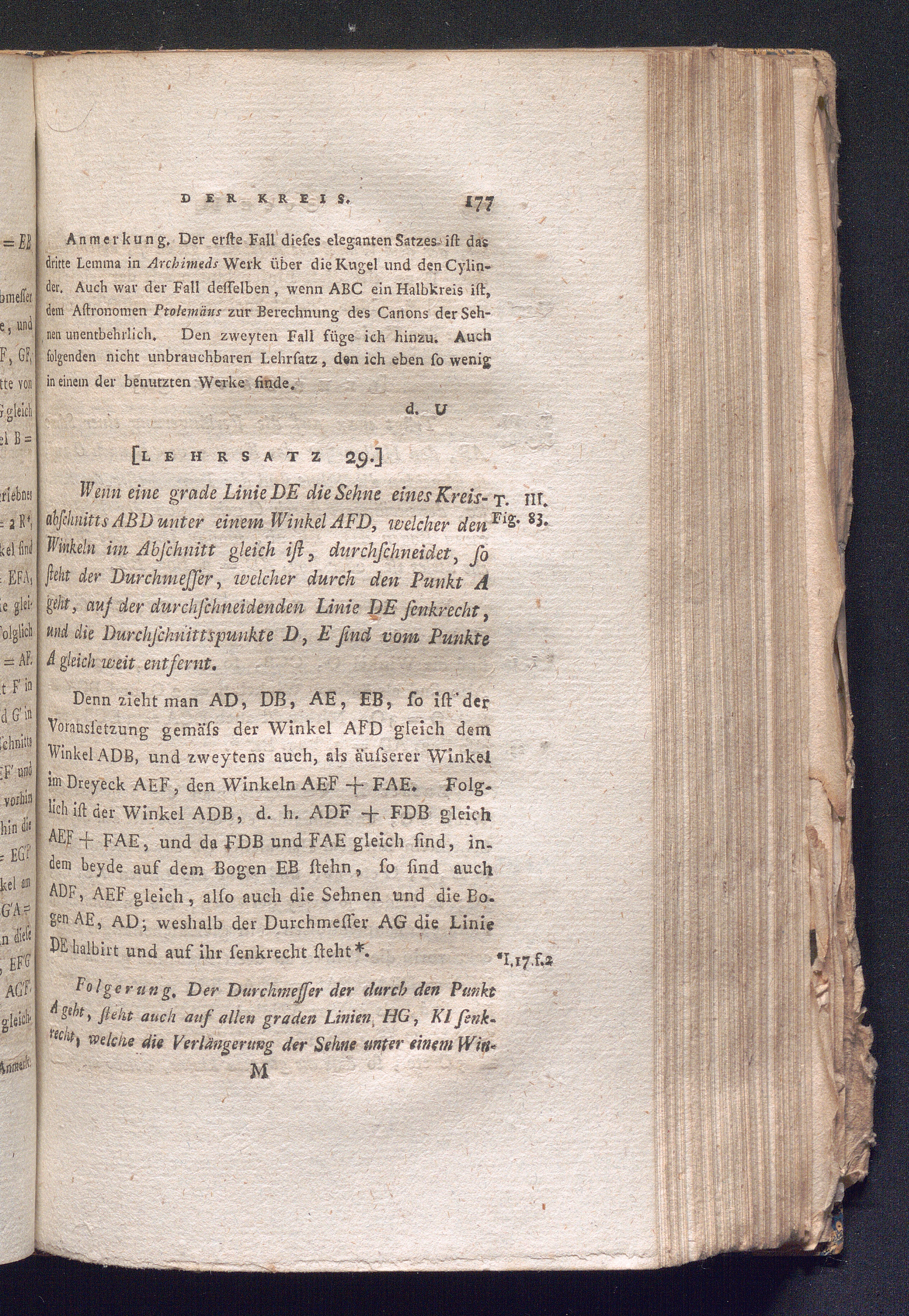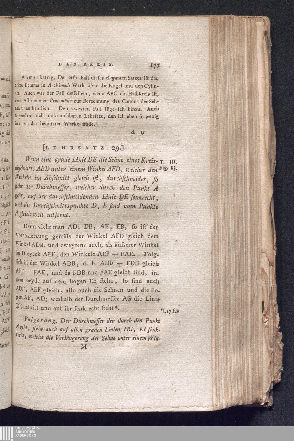 [Lehrsatz 29.] Wenn eine grade Linie DE die Sehne eines Kreisabschnitts ABD unter[...]