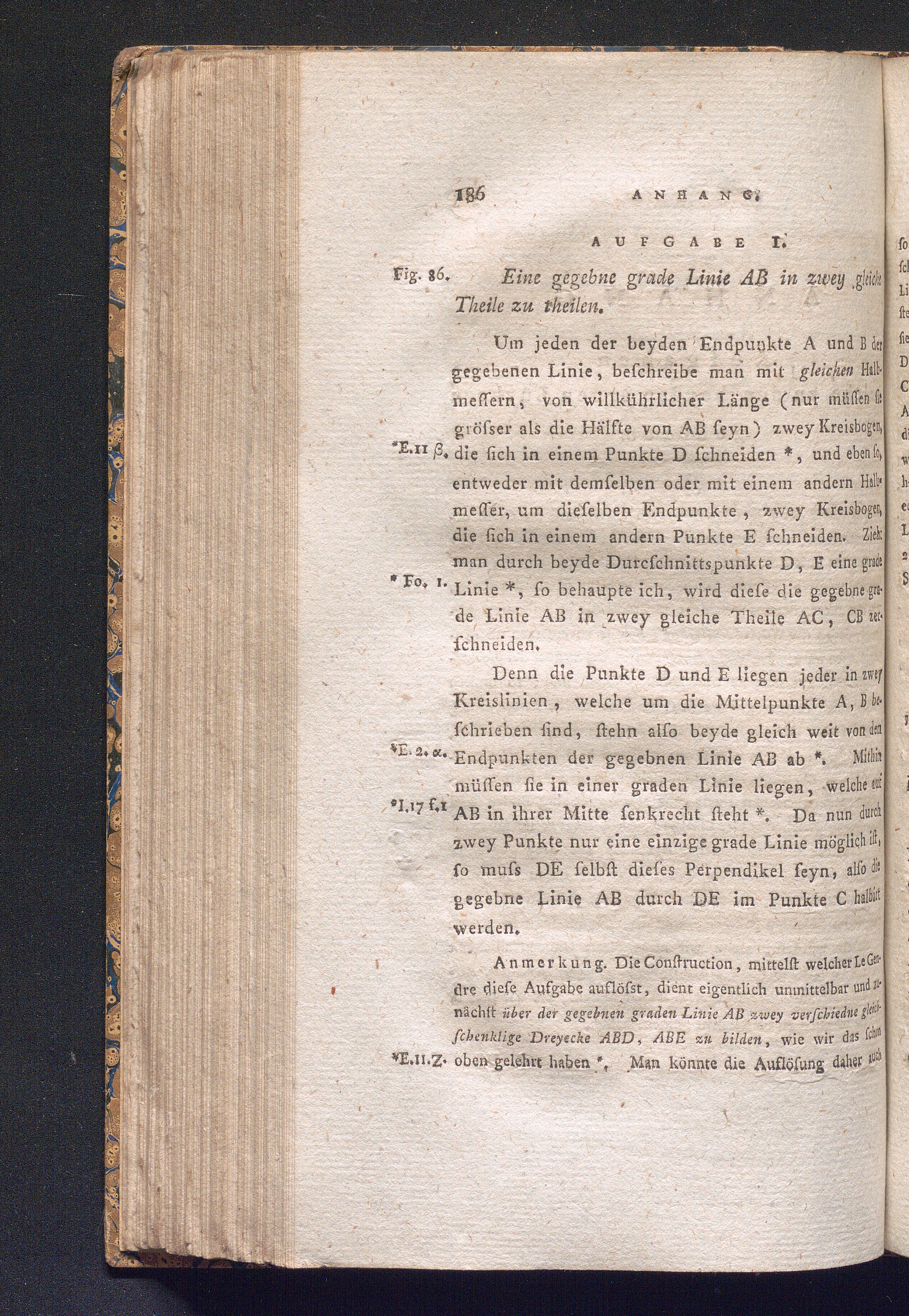 Aufgabe 1. Eine gegebne grade Linie AB in zwey gleiche Theile zu theilen.