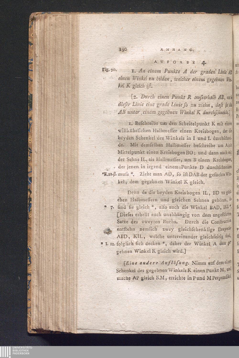 Aufgabe 4. 1. An einem Punkte A der graden Linie AB einen Winkel zu bilden, welcher[...]