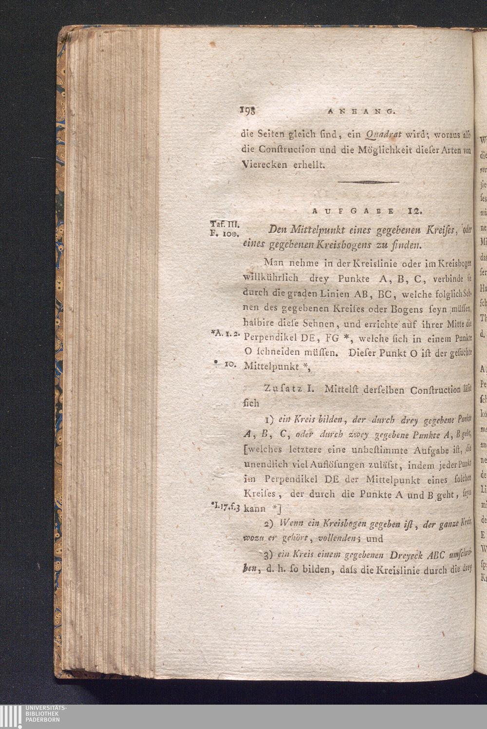Aufgabe 12. Den Mittelpunkt eines gegebnen Kreises, oder eines gegebnen Kreisbogens[...]