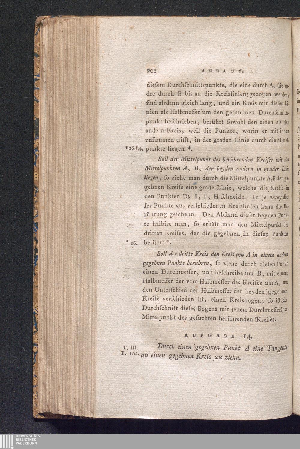 Aufgabe 14. Durch einen gegebnen Punkt A eine Tangente an einen gegebnen Kreis zu[...]
