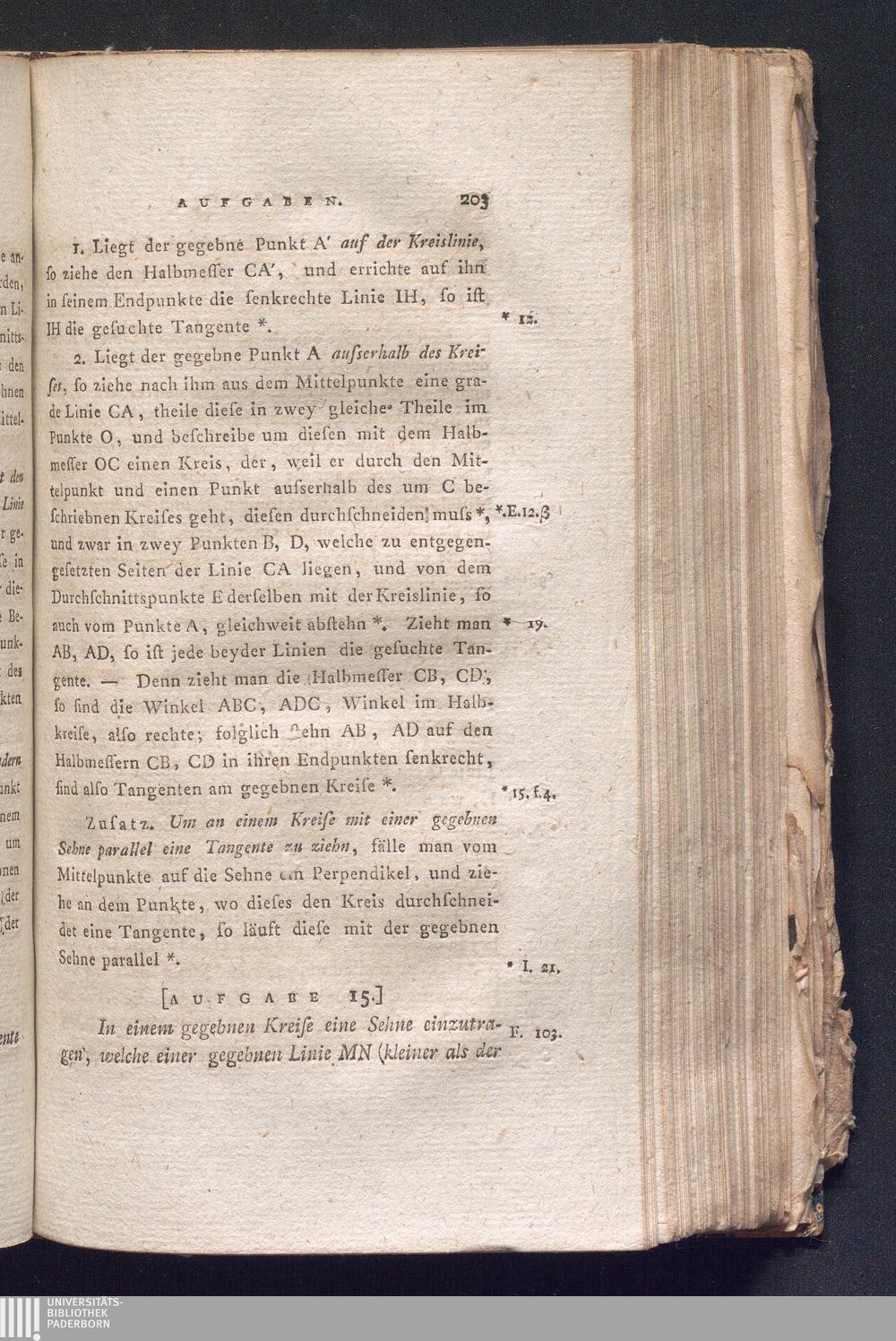 [Aufgabe 15.] In einem gegebnen Kreise eine Sehne einzutragen, welche einer gegebnen[...]