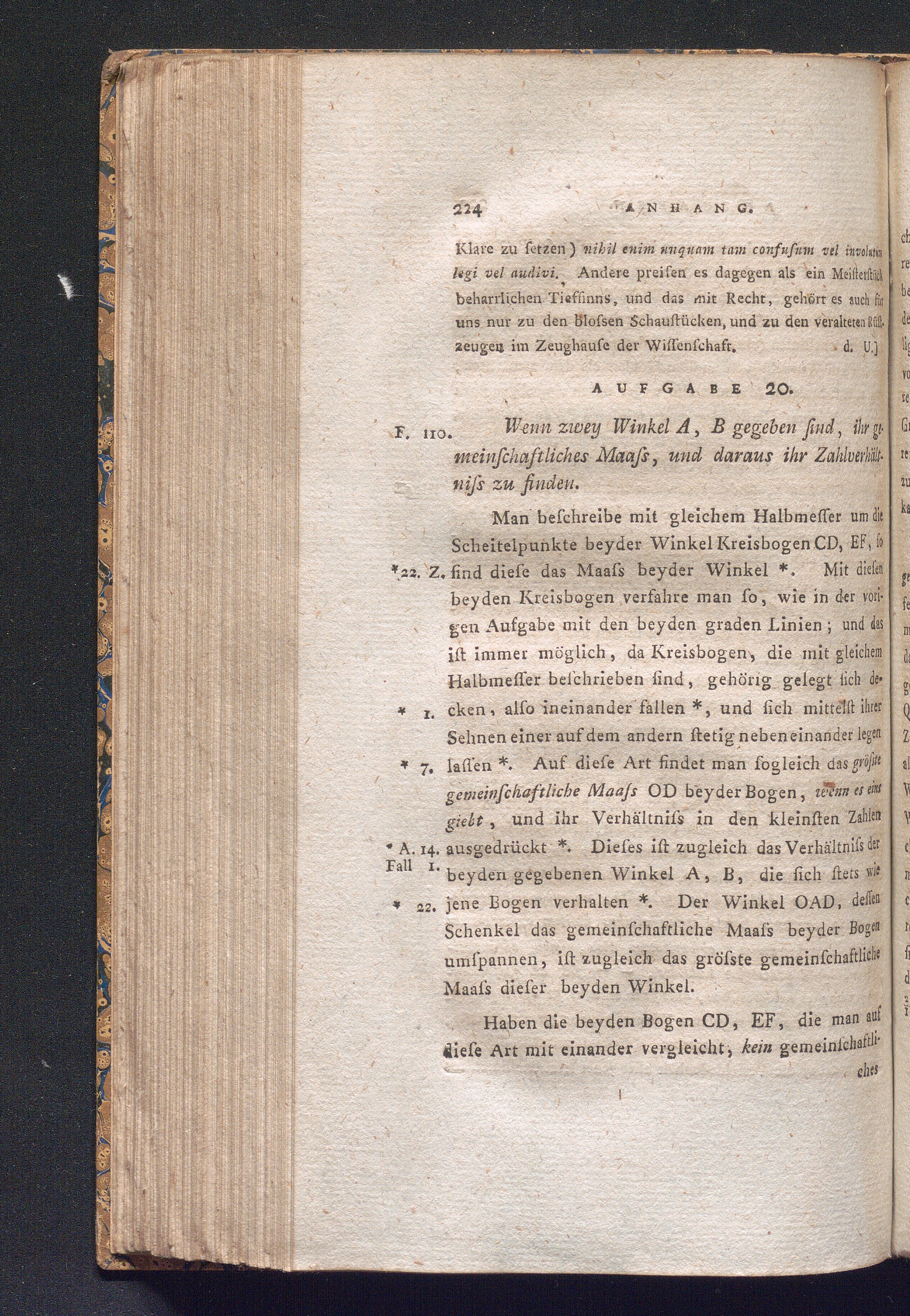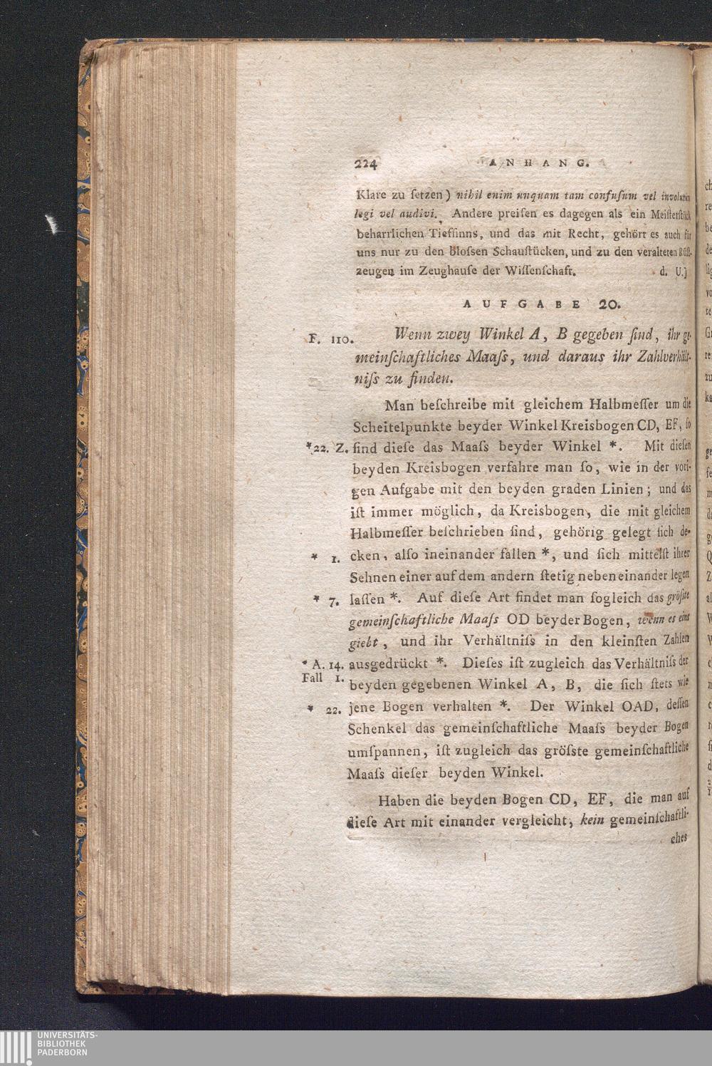 Aufgabe 20. Wenn zwey Winkel A, B gegeben sind, ihr gemeinschaftliches Maass, und[...]