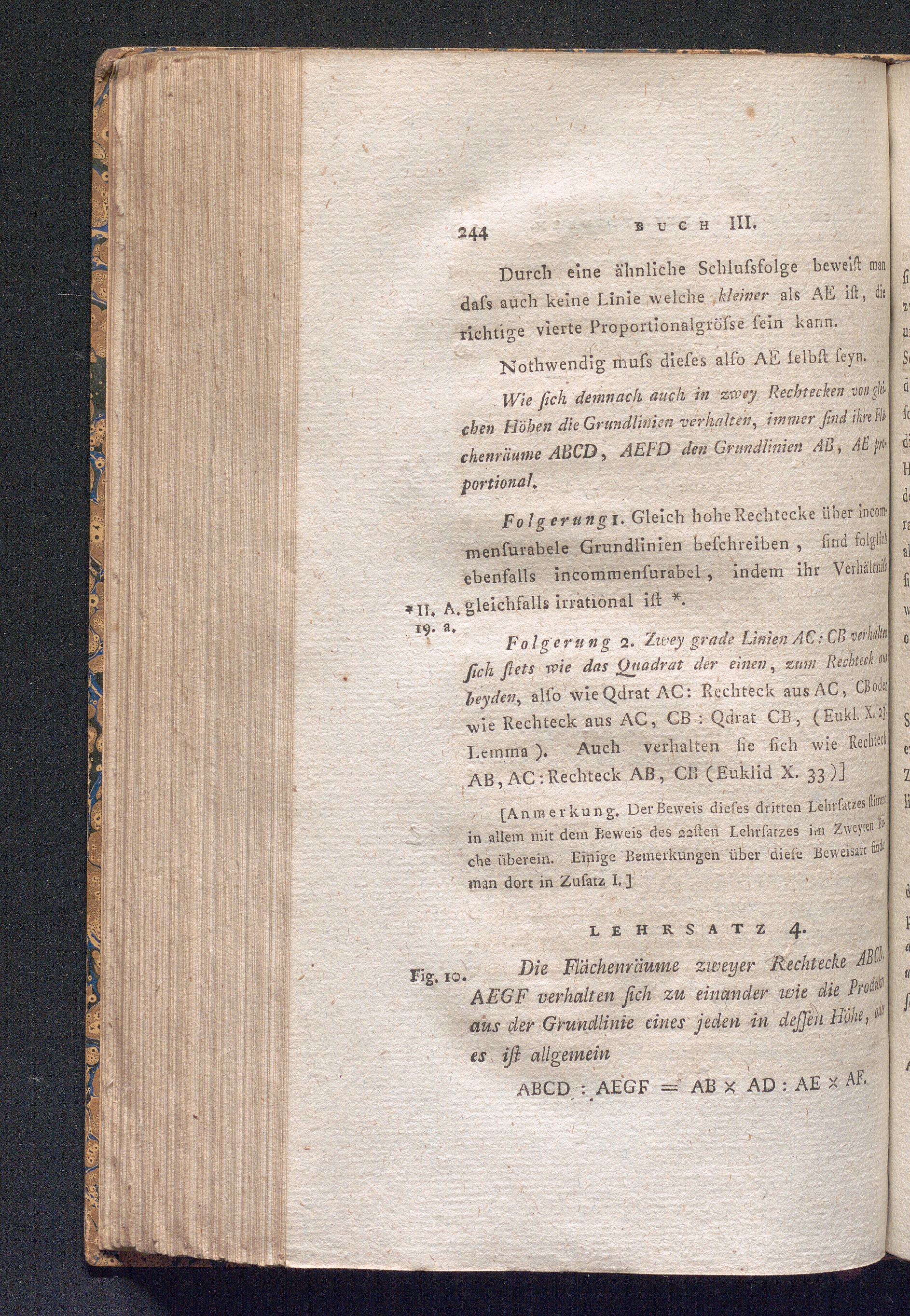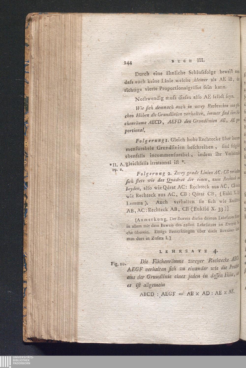Lehrsatz 4. Die Flächenräume zweyer Rechtecke ABCD, AEGF verhalten sich zu einander[...]