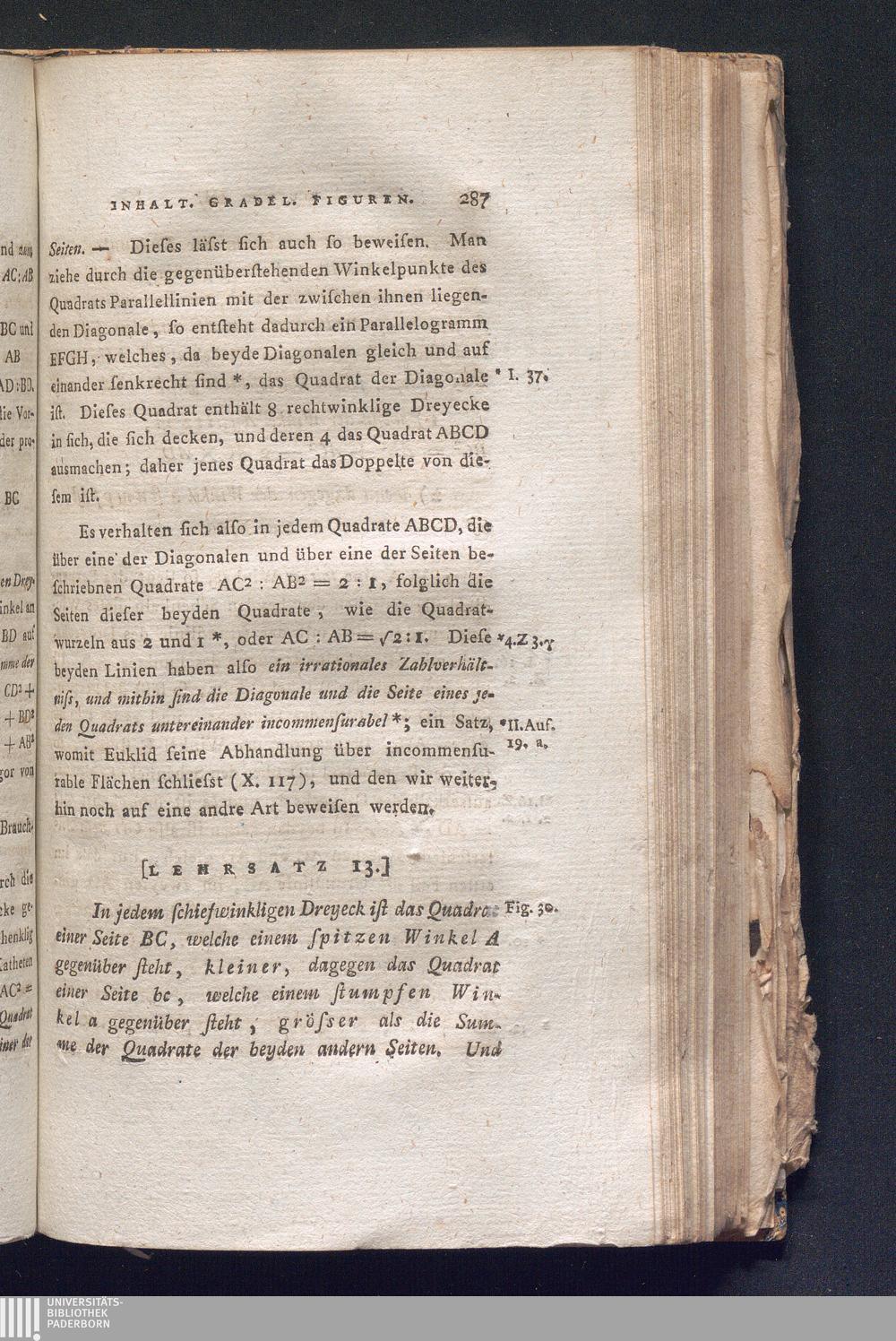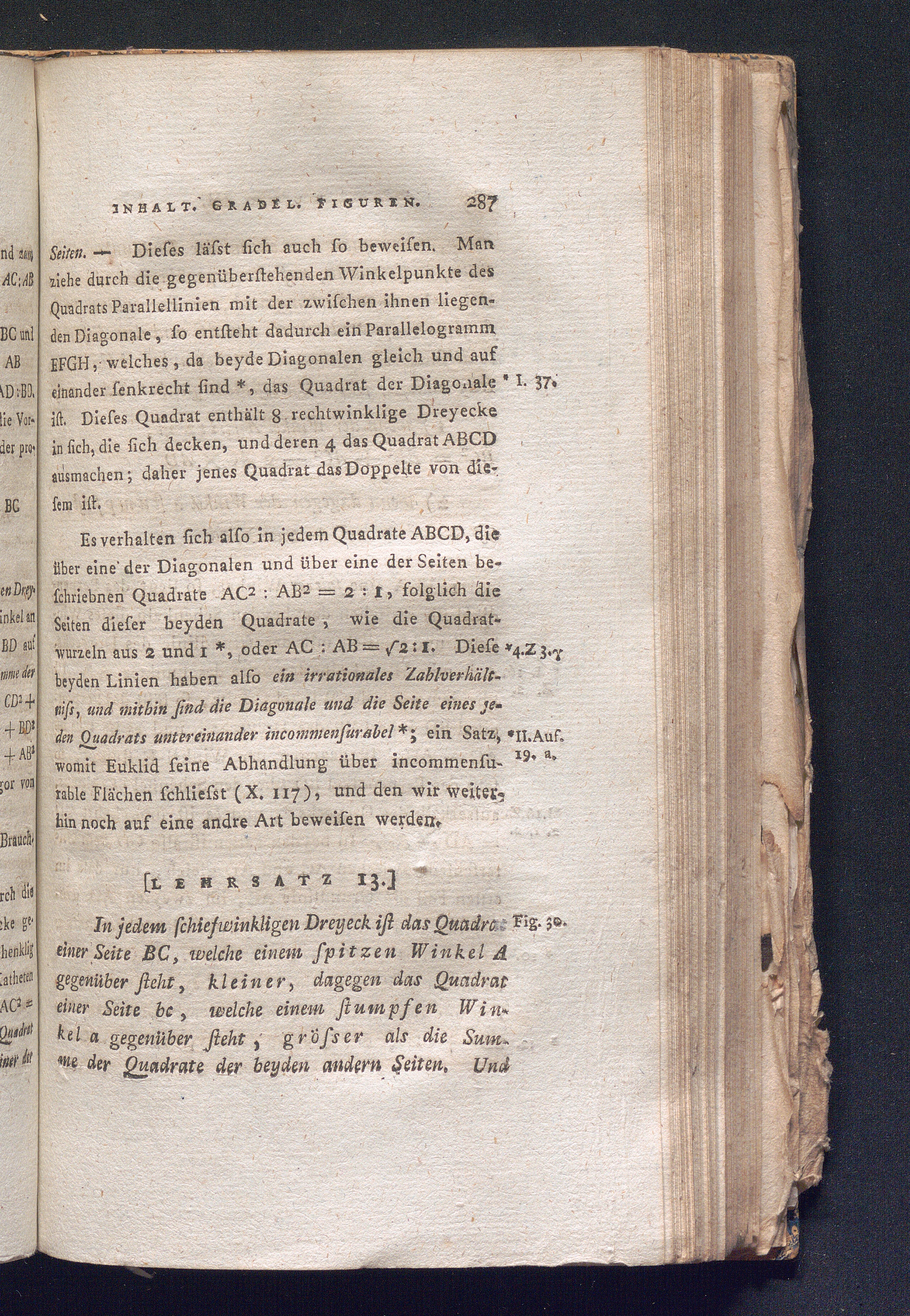 [Lehrsatz 13.] In jedem schiefwinkligen Dreyeck ist das Quadrat einer Seite BC, welche[...]