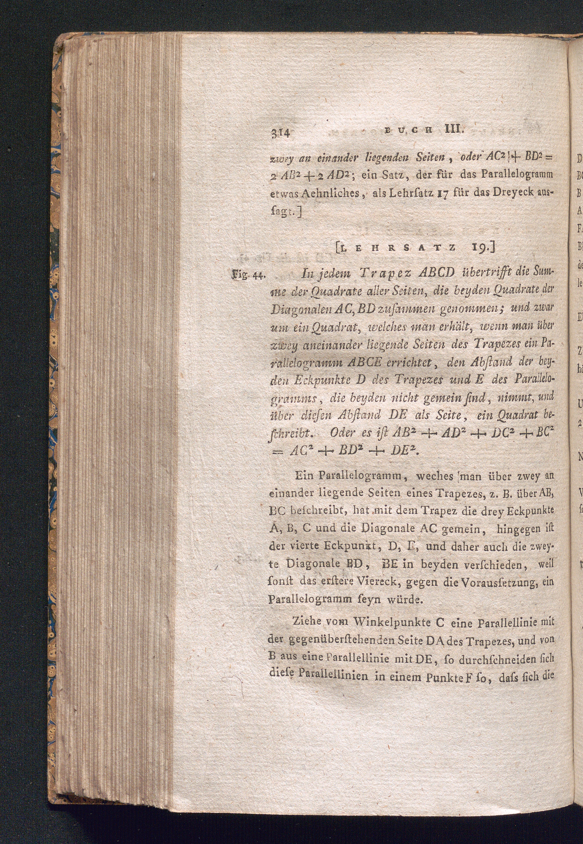 [Lehrsatz 19.] In jedem Trapez ABCD übertrifft die Summe der Quadrate aller Seiten,[...]
