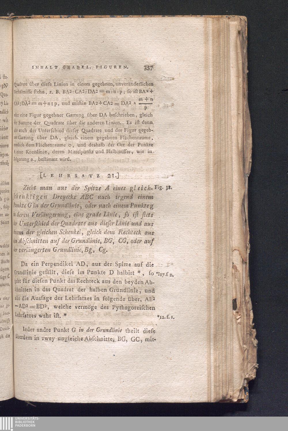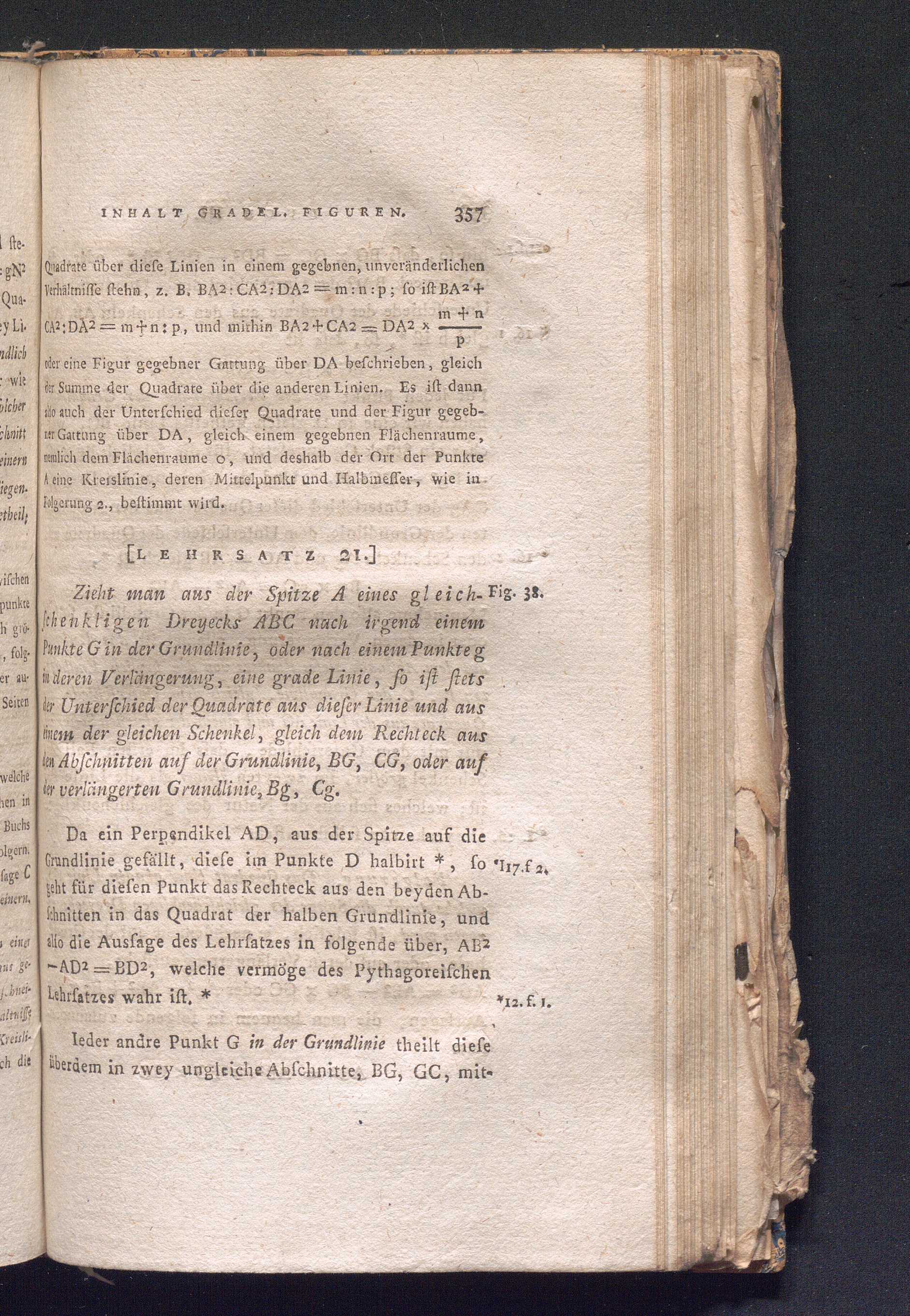 [Lehrsatz 21.] Zieht man aus der Spitze A eines gleichschenkligen Dreyecks ABC nach[...]