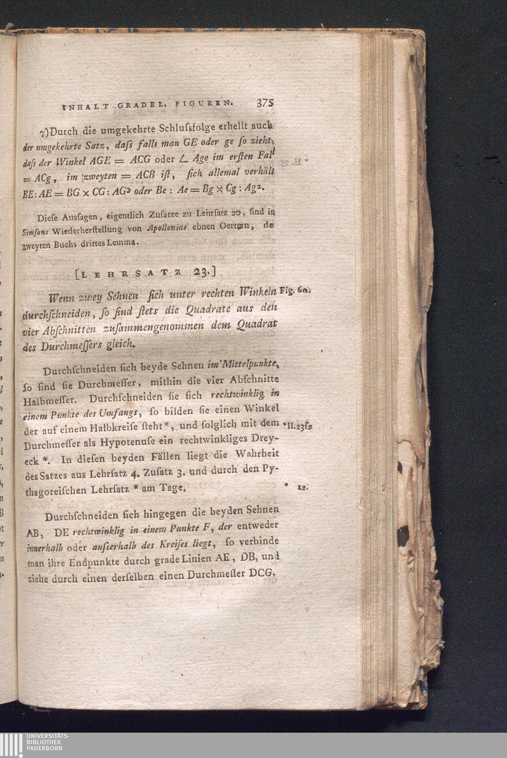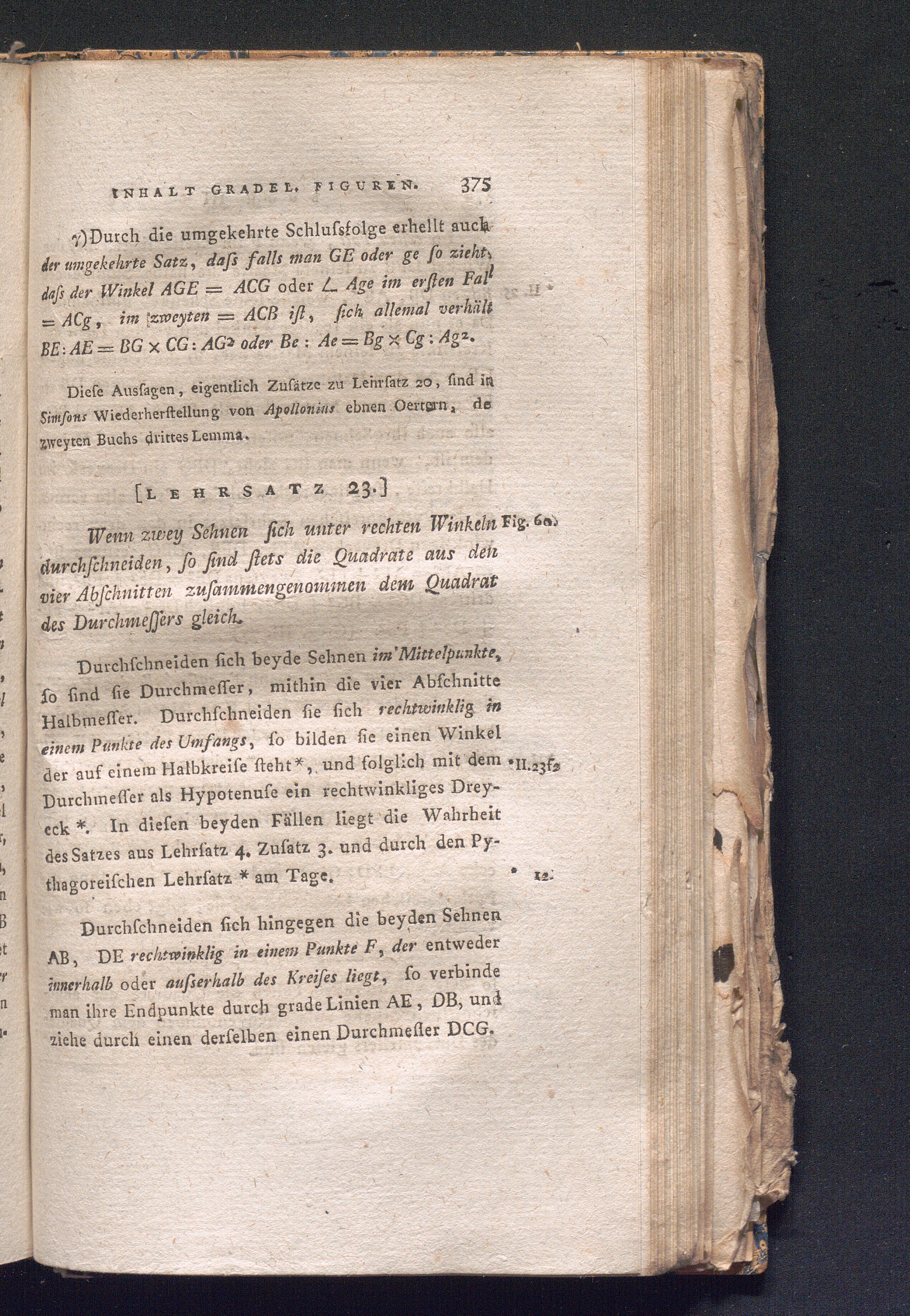 [Lehrsatz 23.] Wenn zwey Sehnen sich unter rechten Winkeln durchschneiden, so sind[...]