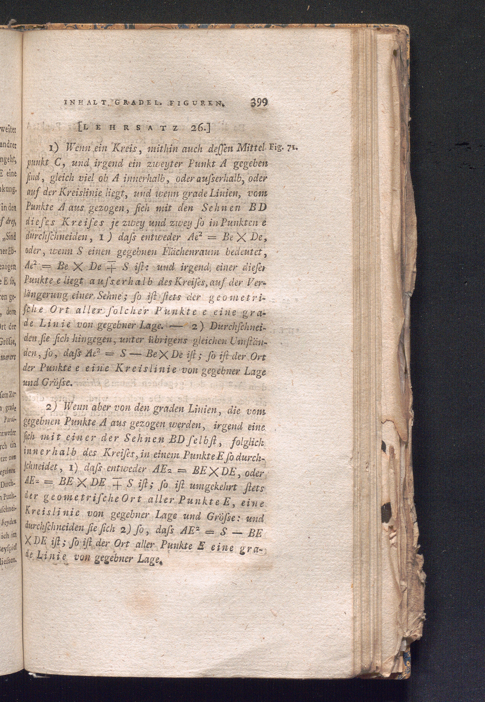 [Lehrsatz 26.] 1) Wenn ein Kreis, mithin auch dessen Mittelpunkt C, und irgend ein[...]