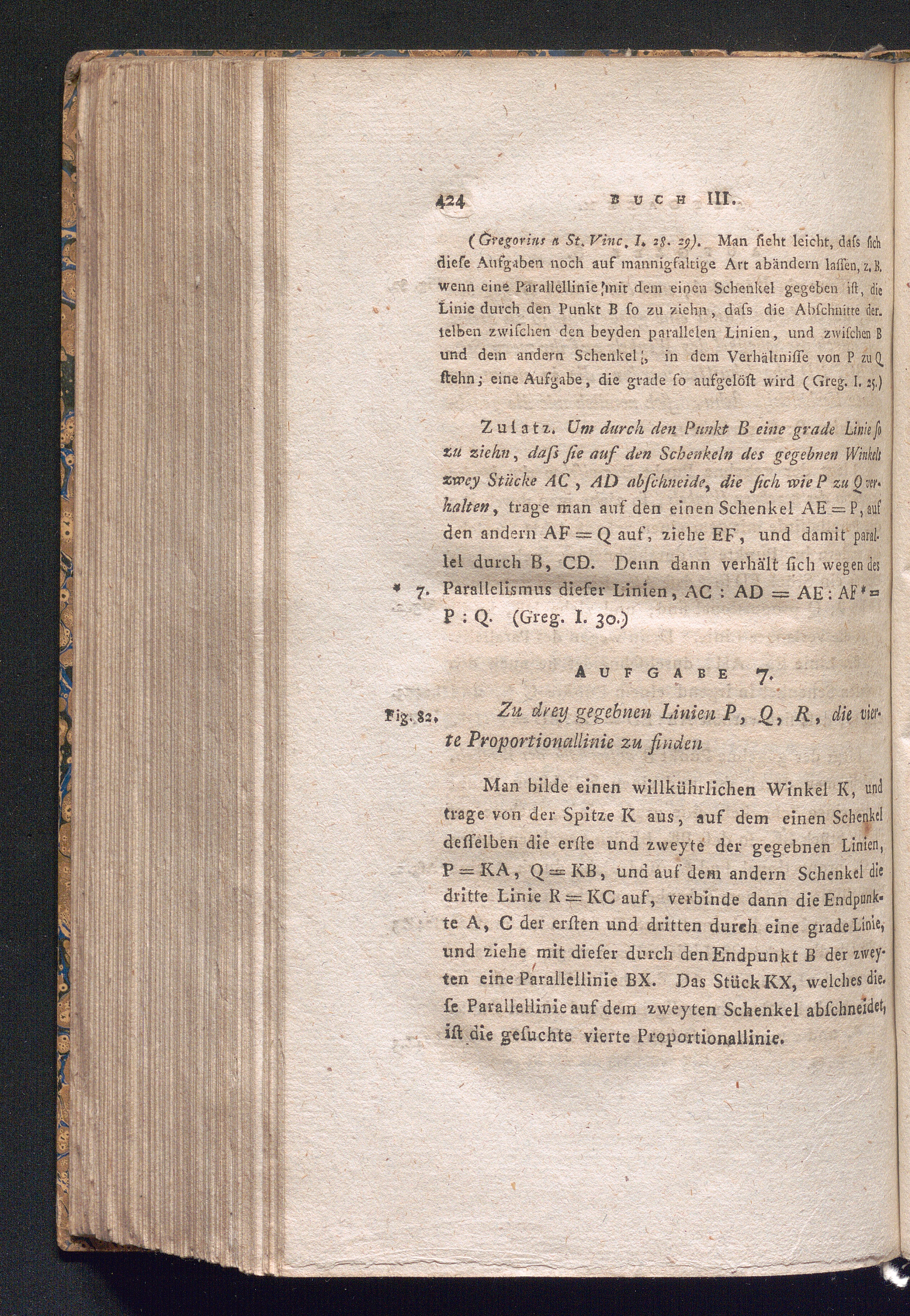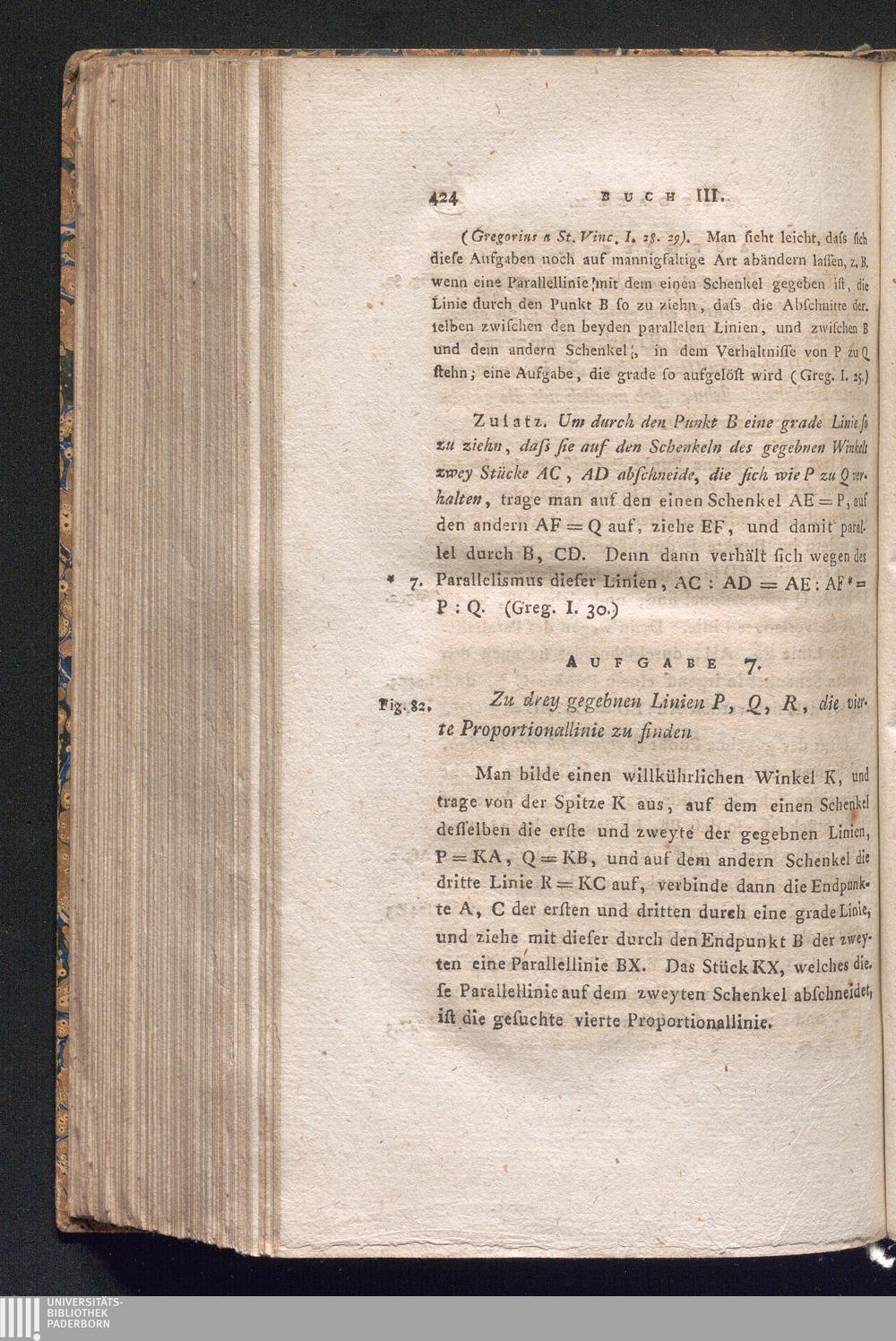 Aufgabe 7. Zu drey gegebnen Linien P, Q, R, die vierte Proportionallinie zu find[...]