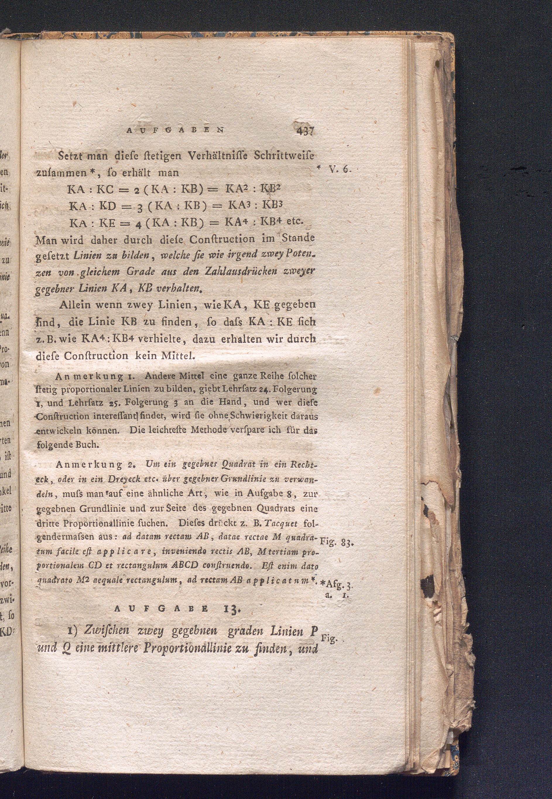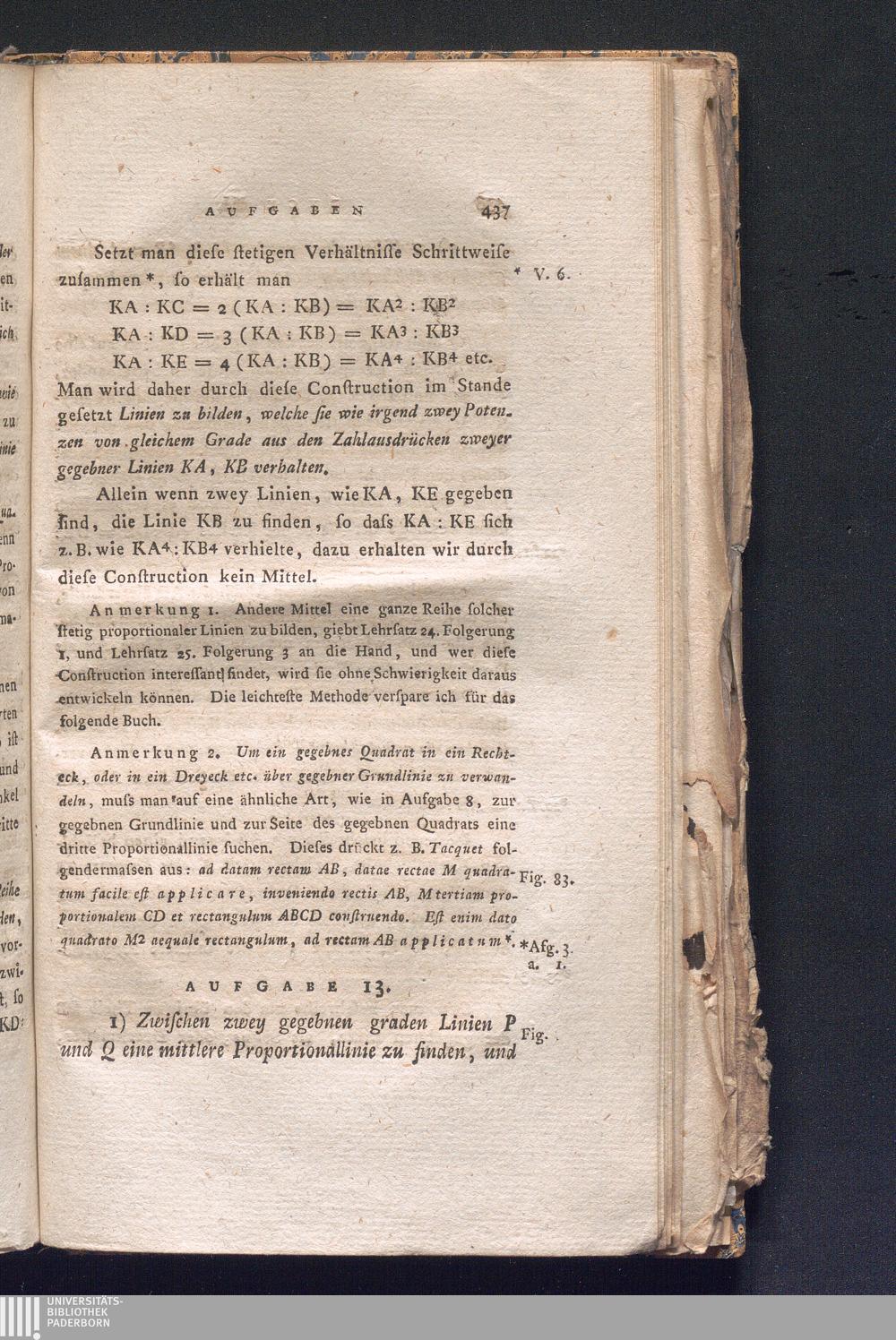Aufgabe 13. 1) Zwischen zwey gegebnen graden Linien P und Q eine mittlere Proportionallinie[...]
