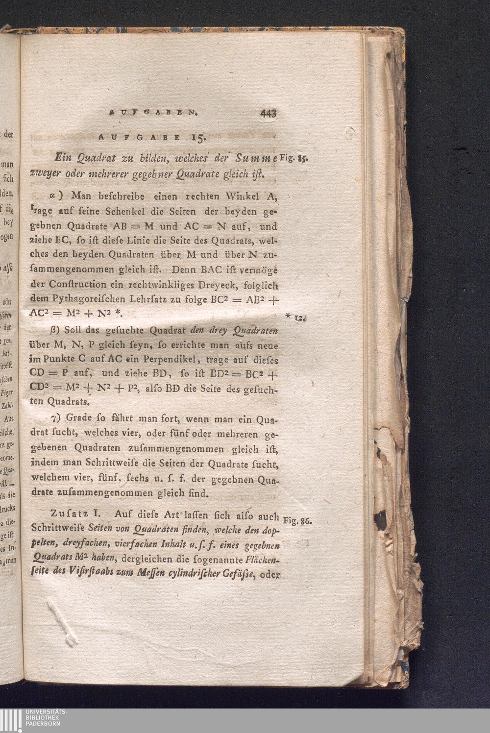 Aufgabe 15. Ein Quadrat zu bilden, welches der Summe zweyer oder mehrerer gegebner[...]