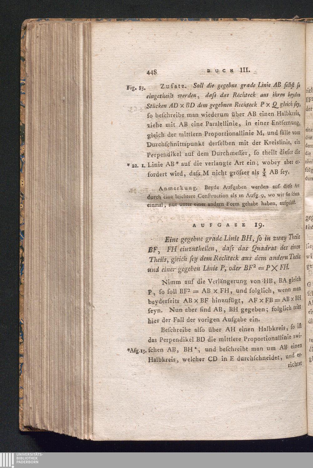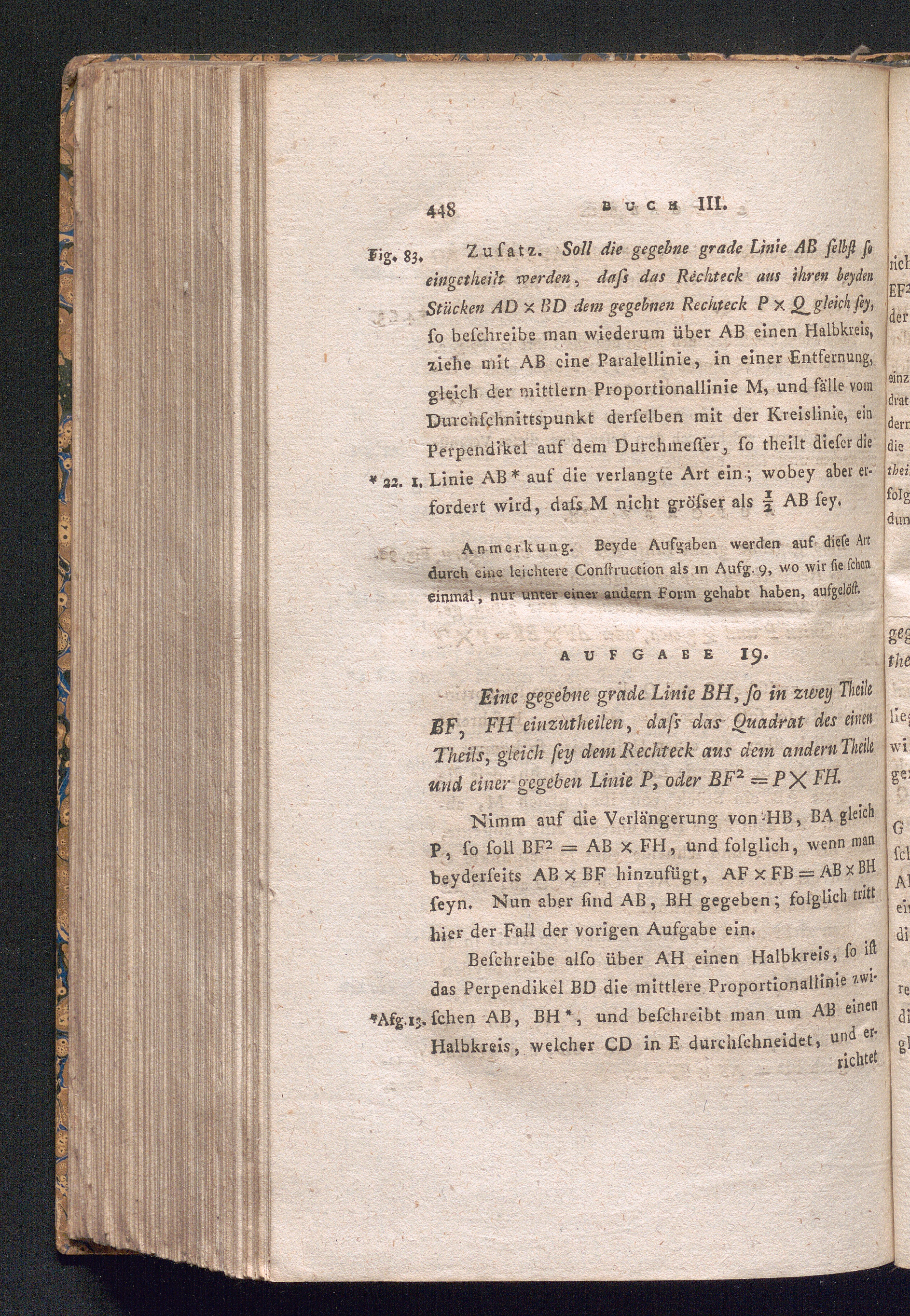 Aufgabe 19. Eine gegebne grade Linie BH, so in zwey Theile BF, FH einzutheilen, dass[...]