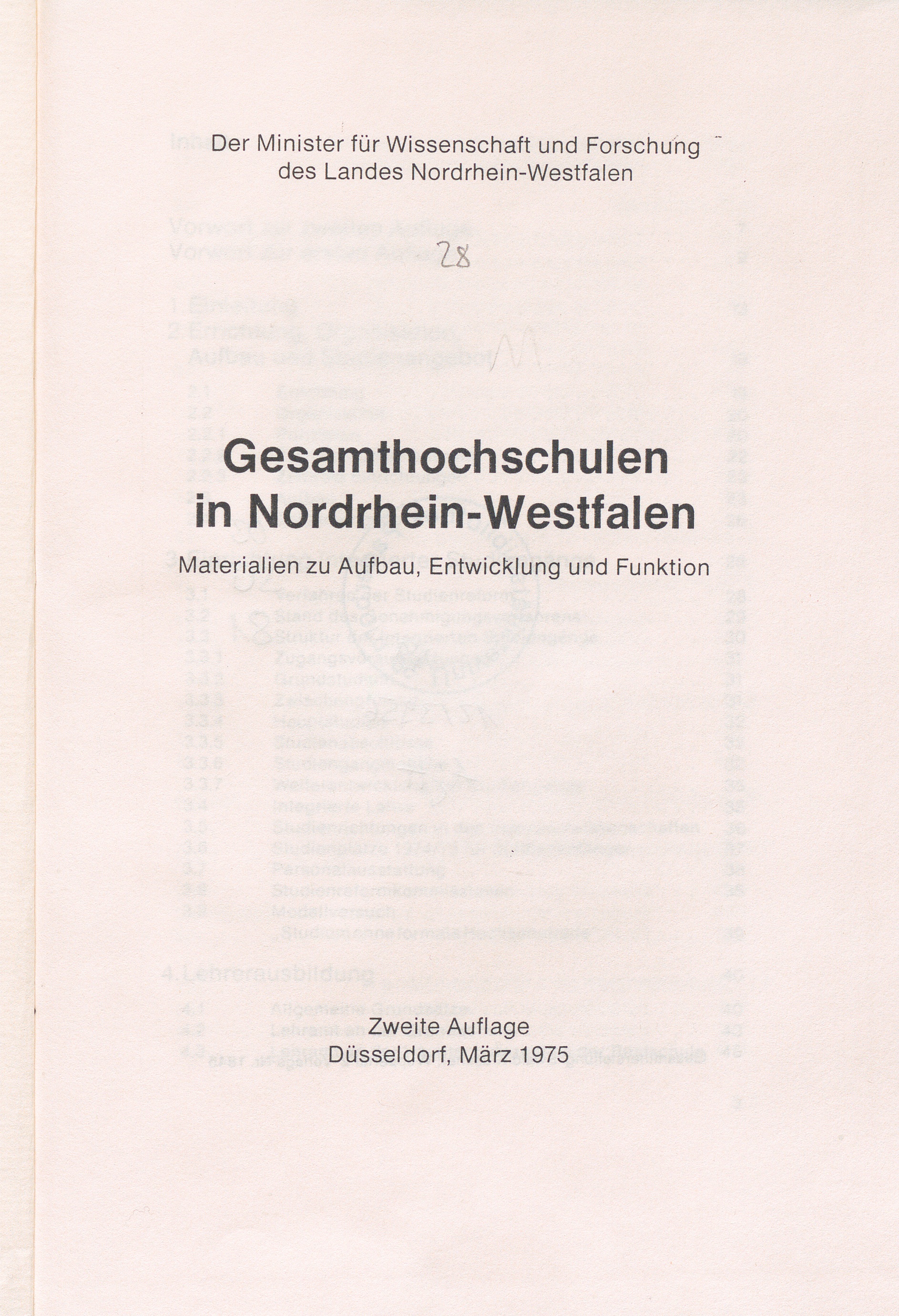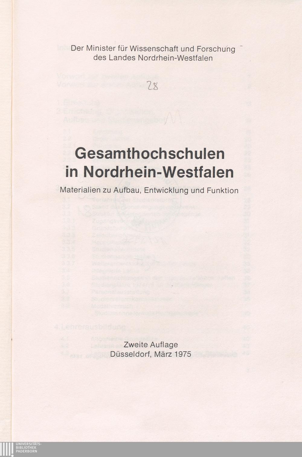 Gesamthochschulen in Nordrhein-Westfalen : Materialien zu Aufbau, Entwicklung und Funktion / Der Minister für Wissenschaft und Forschung des Landes Nordrhein-Westfalen