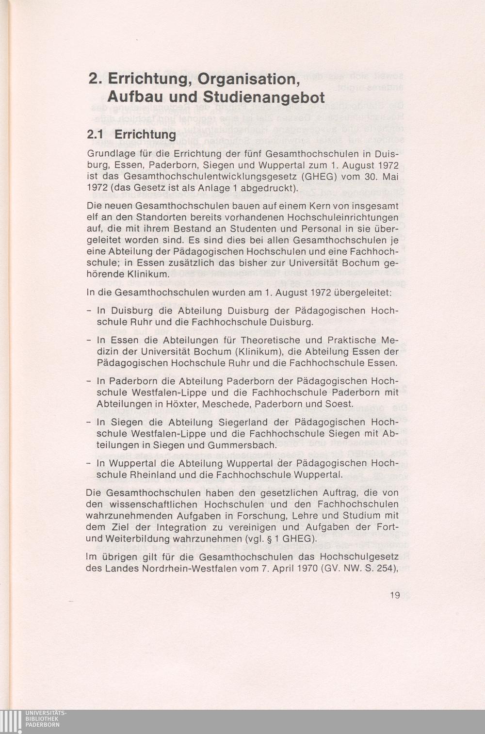 2. Errichtung, Organisation, Aufbau und Studienangebot.