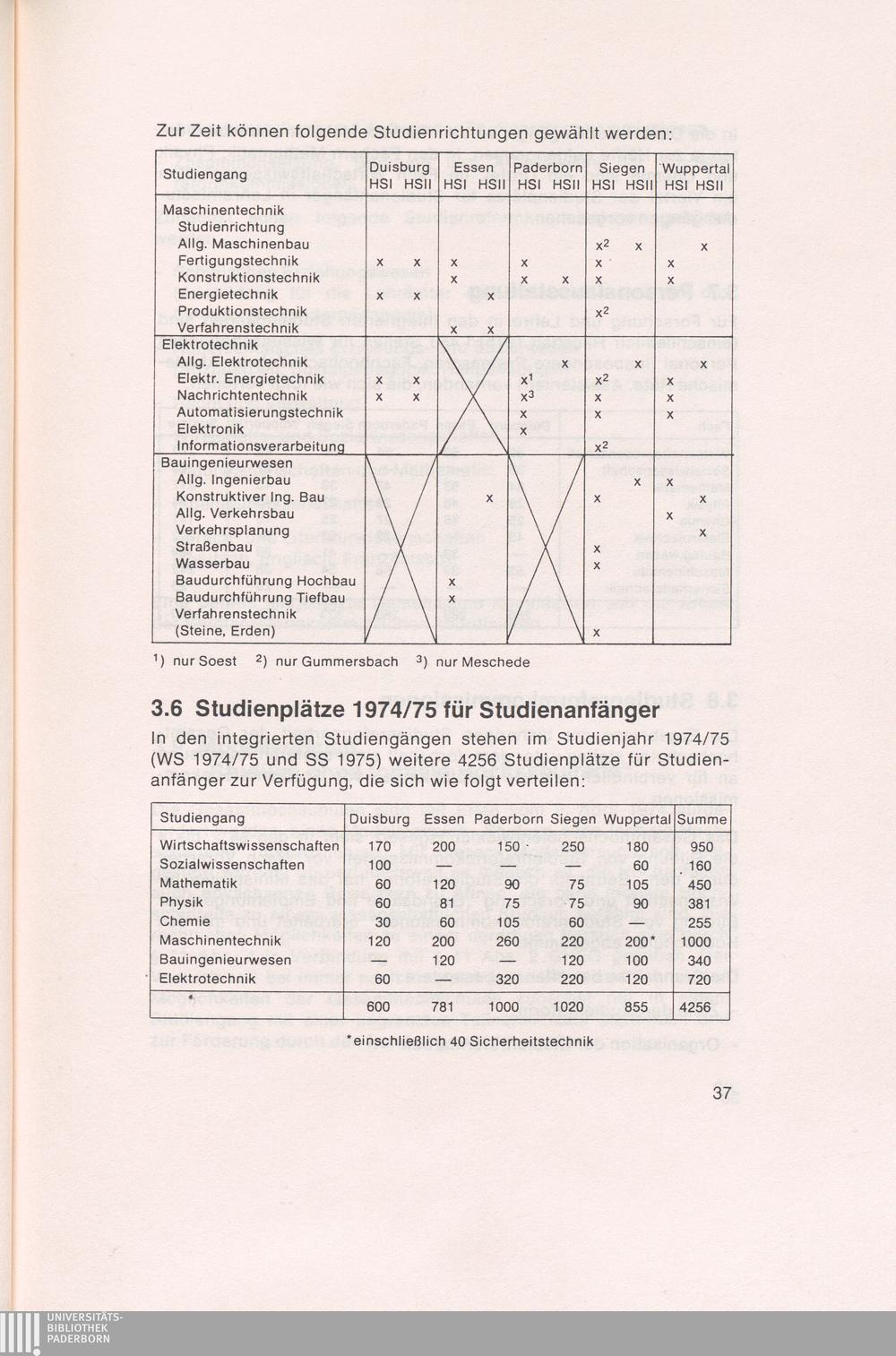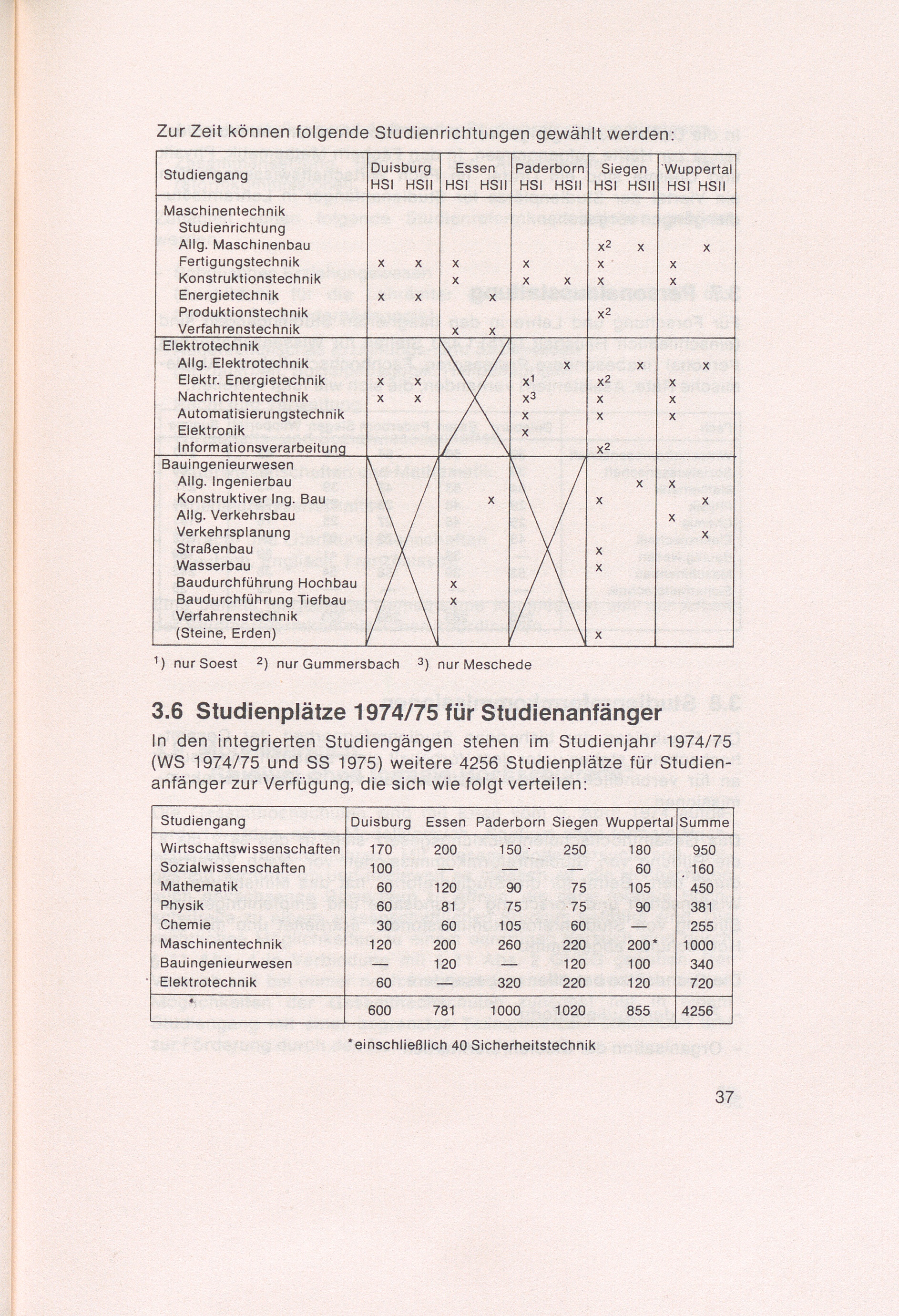 3.6 Studienplätze 1974/75 für Studienanfänger