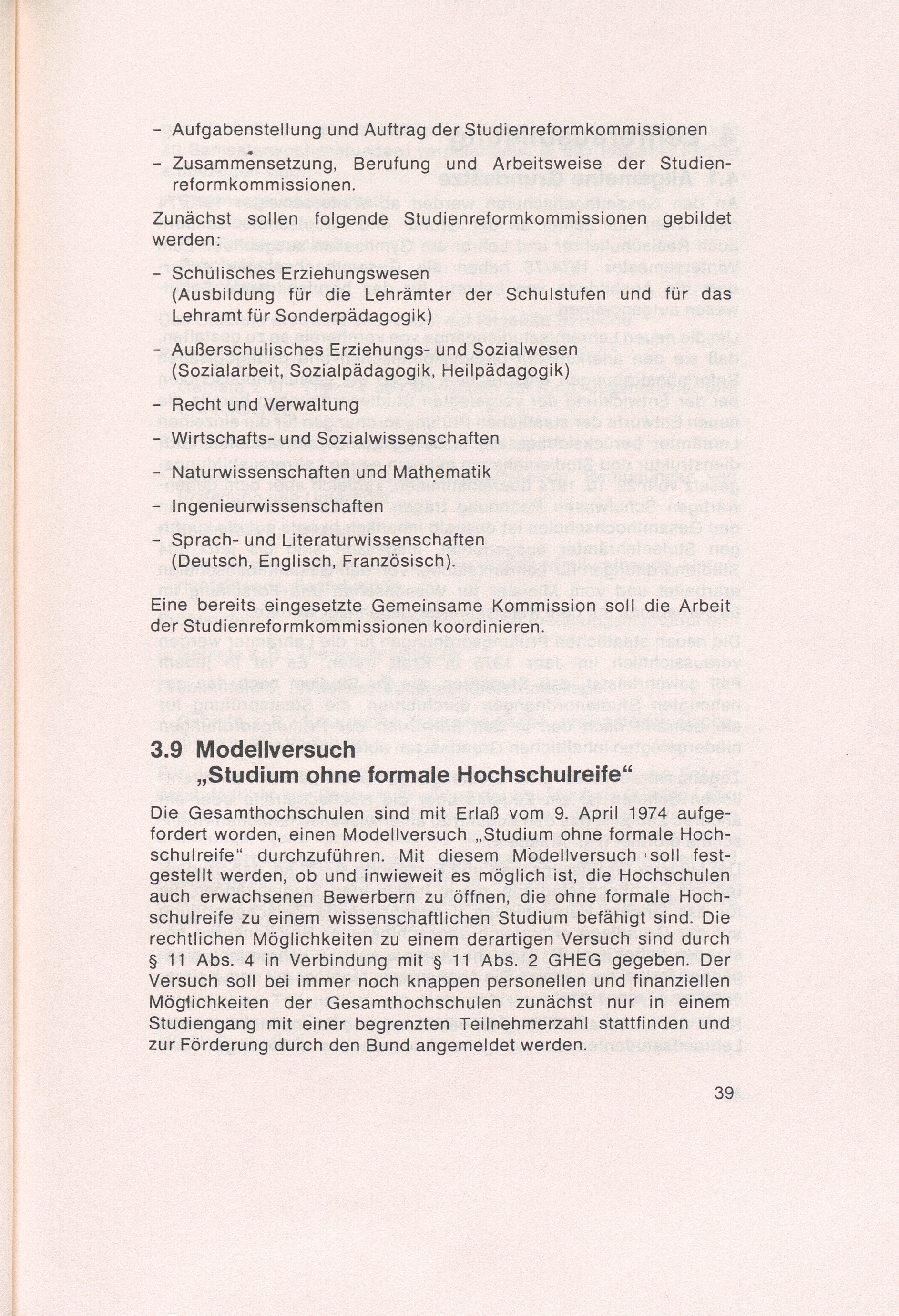 3.9 Modellversuch ,,Studium ohne formale Hochschulreife"
