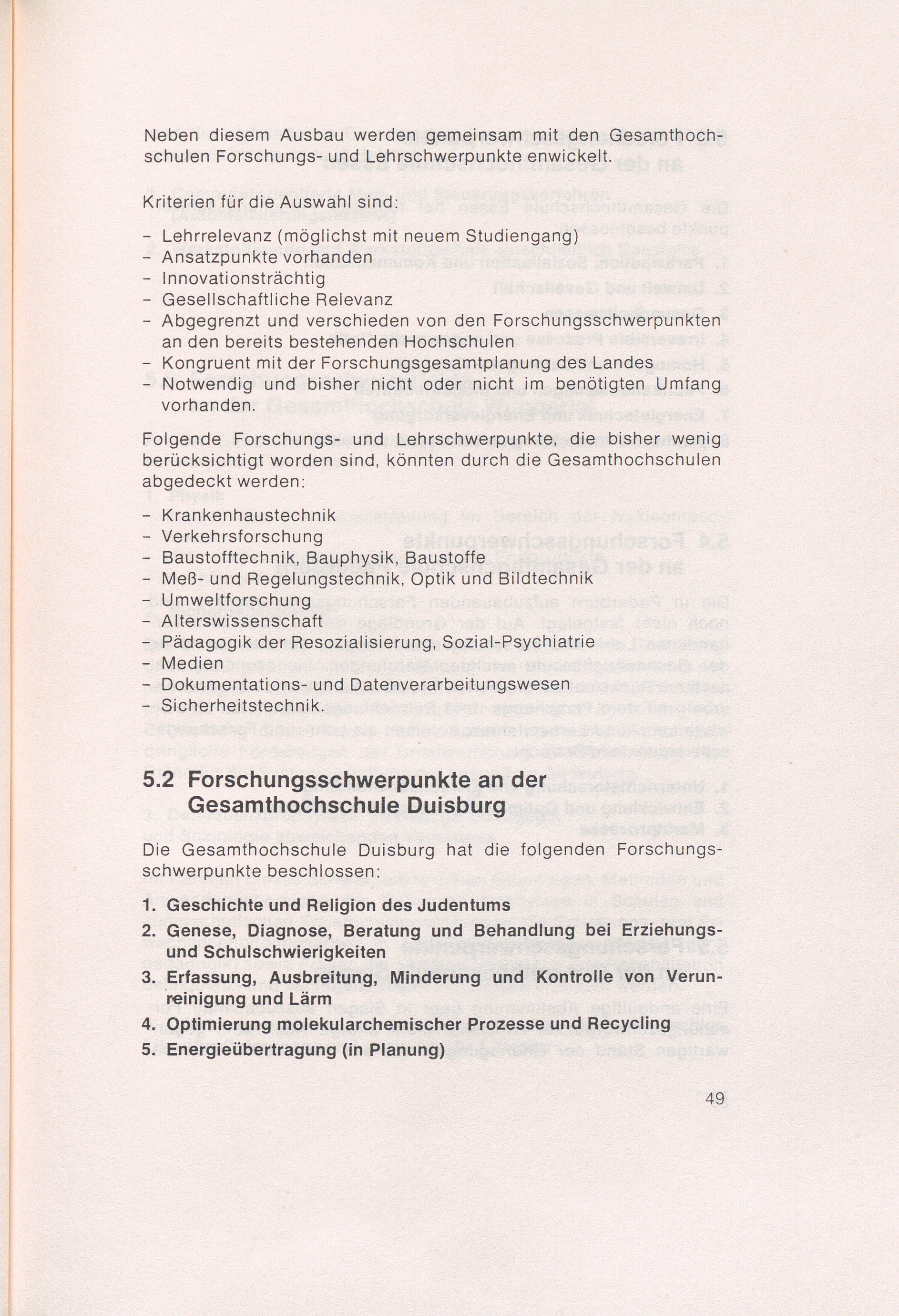 5.2 Forschungsschwerpunkte an der Gesamthochschule Duisburg