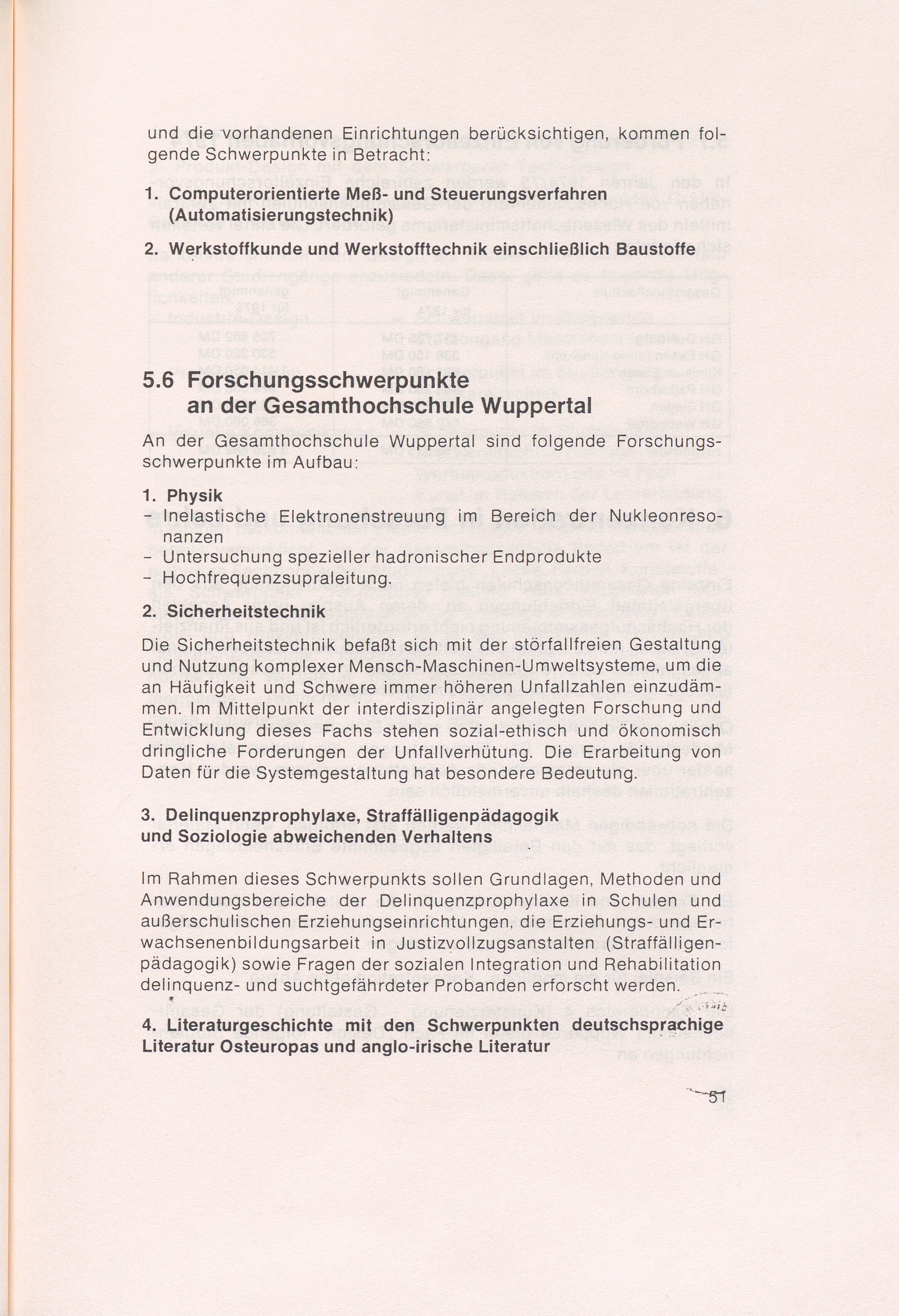 5.6 Forschungsschwerpunkte an der Gesamthochschule Wuppertal