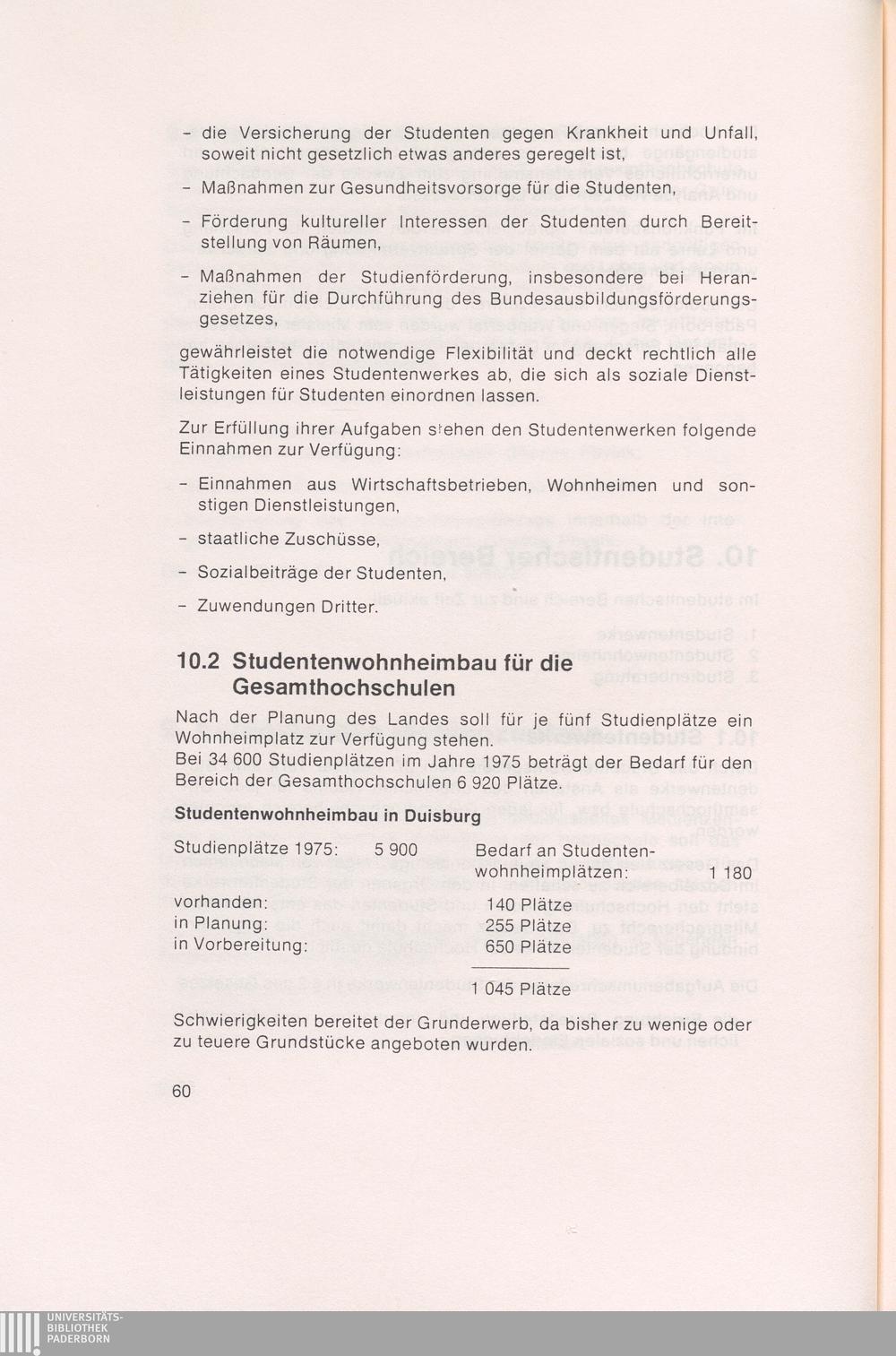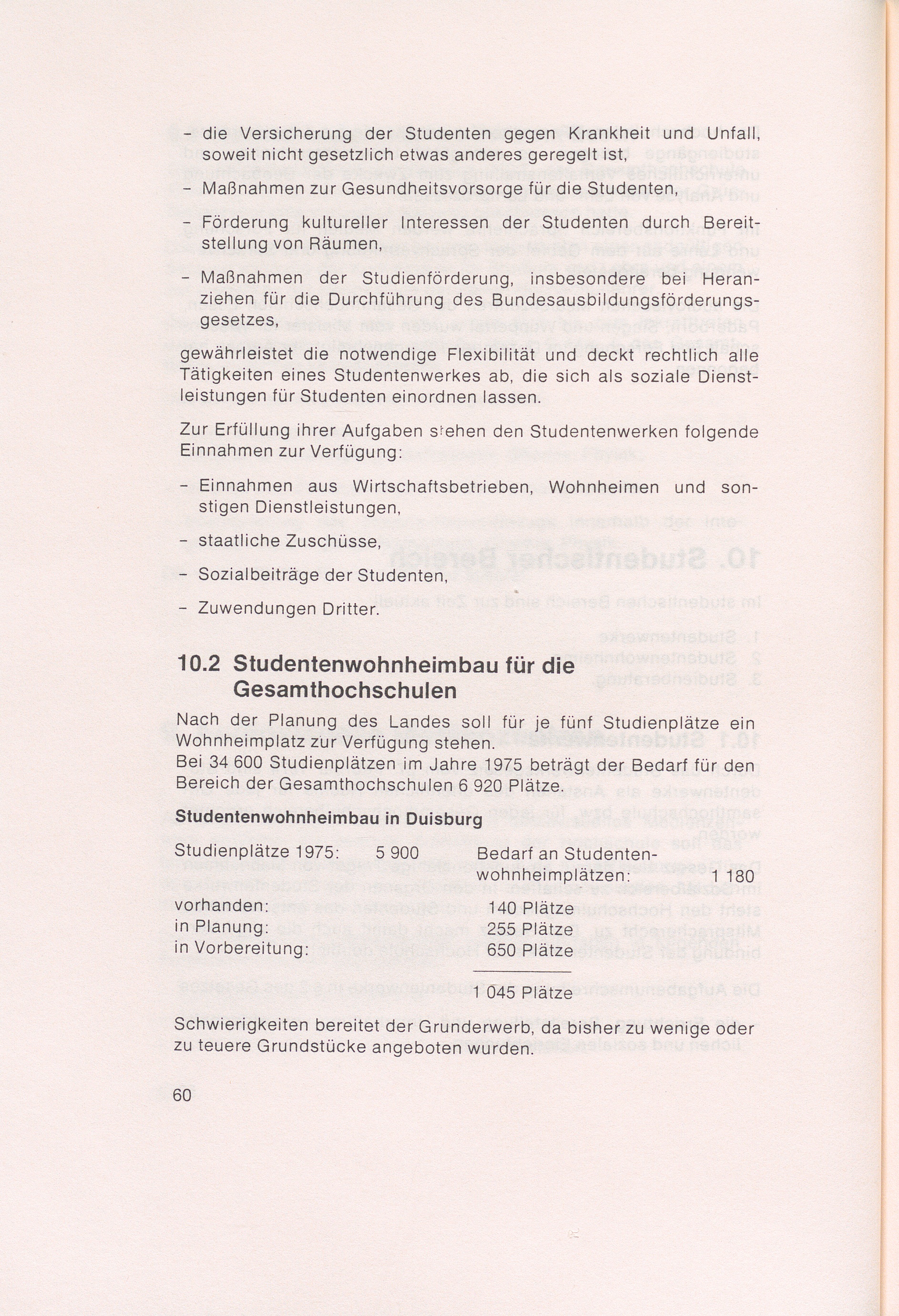 10.2 Studentenwohnheimbau für die Gesamthochschulen