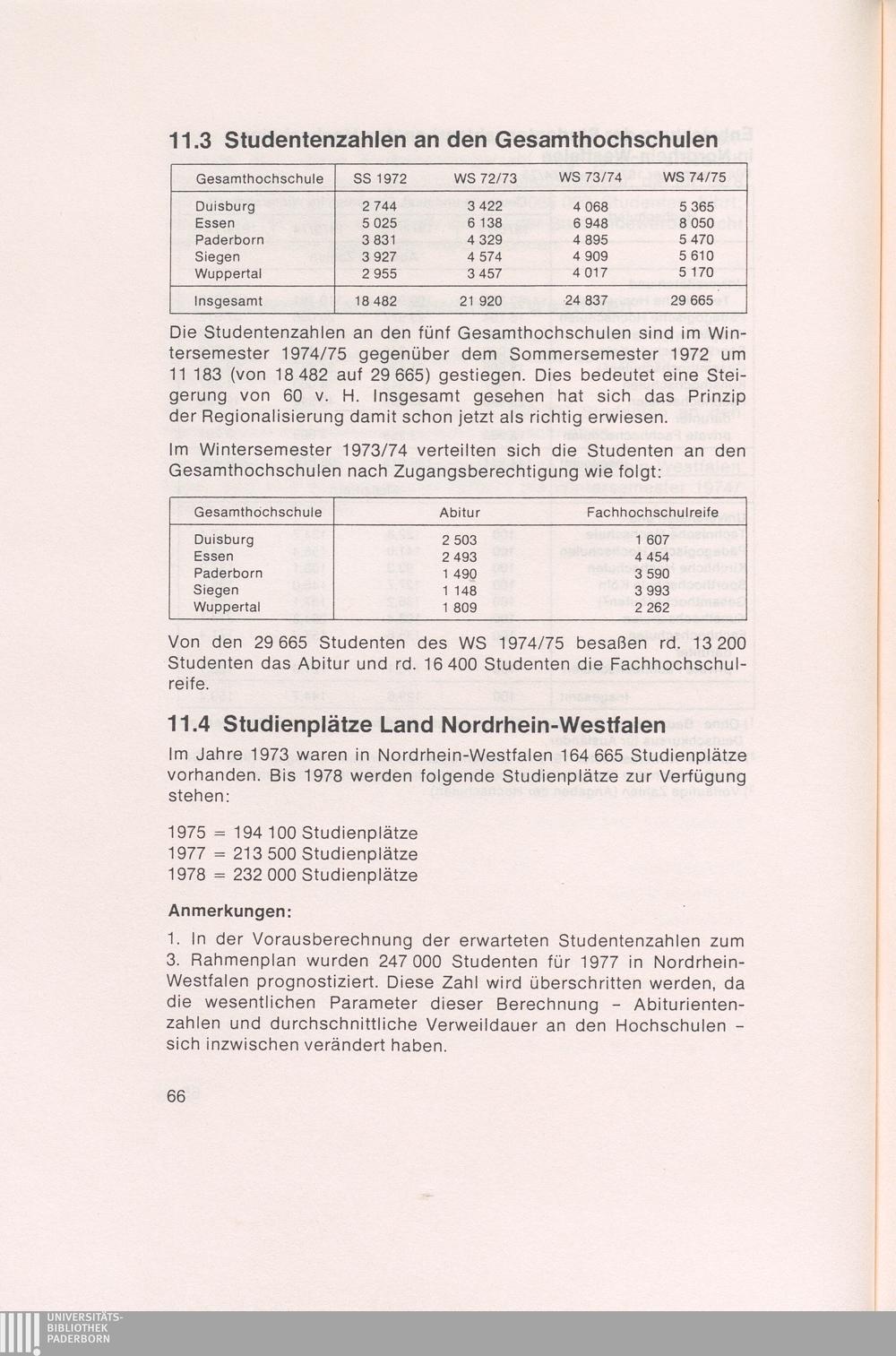11.4 Studienplätze Land Nordrhein-Westfalen