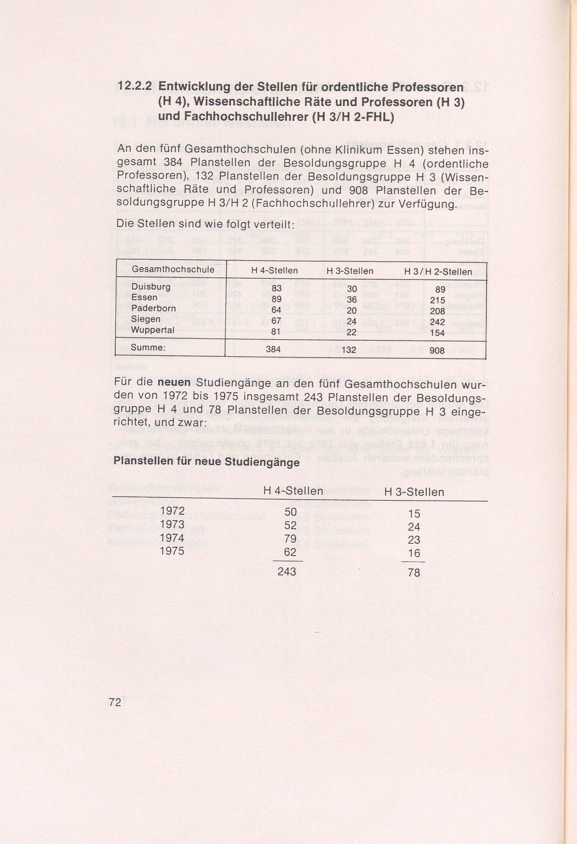 12.2.2 Entwicklung der Stellen für ordentliche Professoren (H 4), Wissenschaftliche[...]