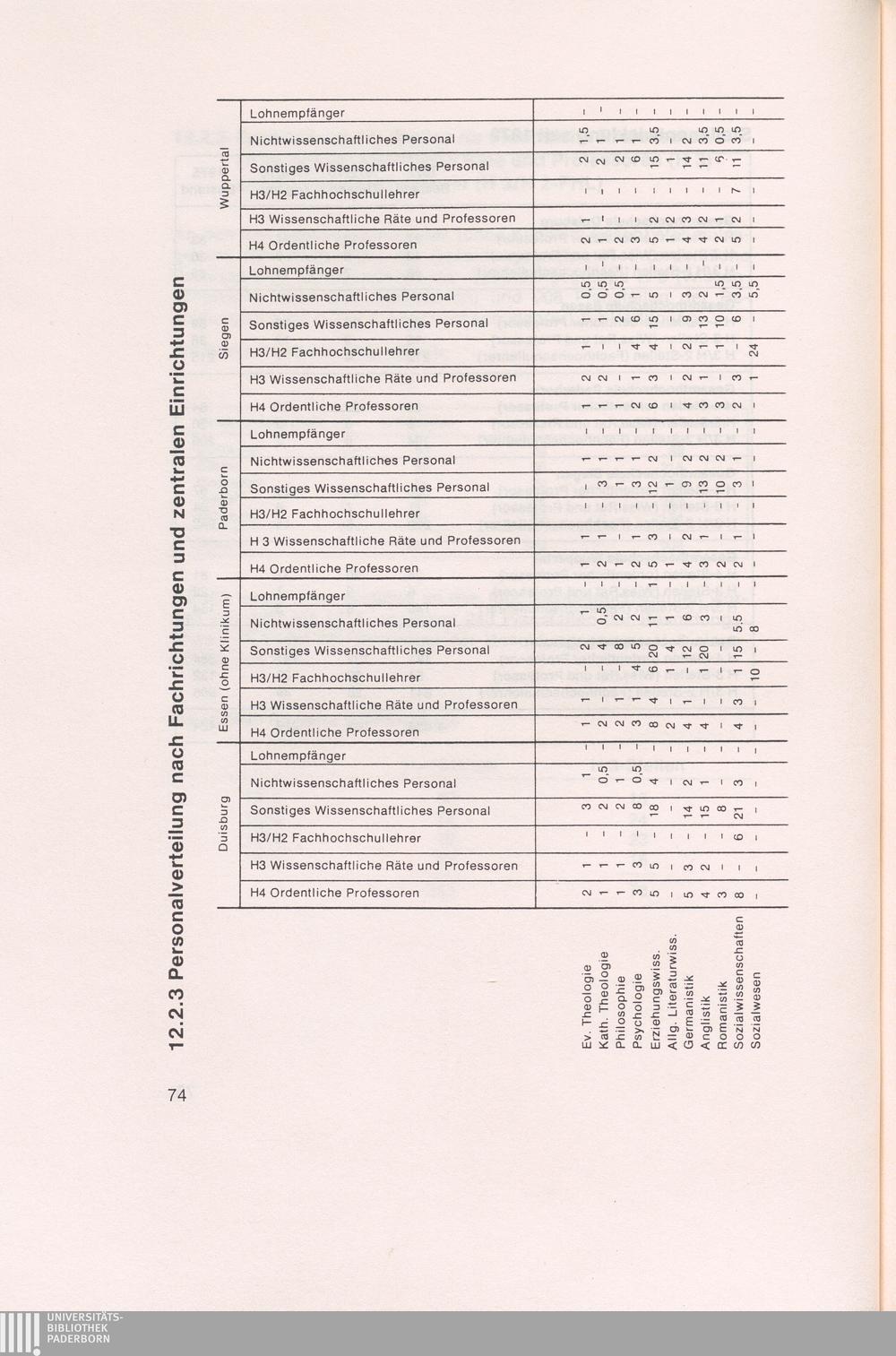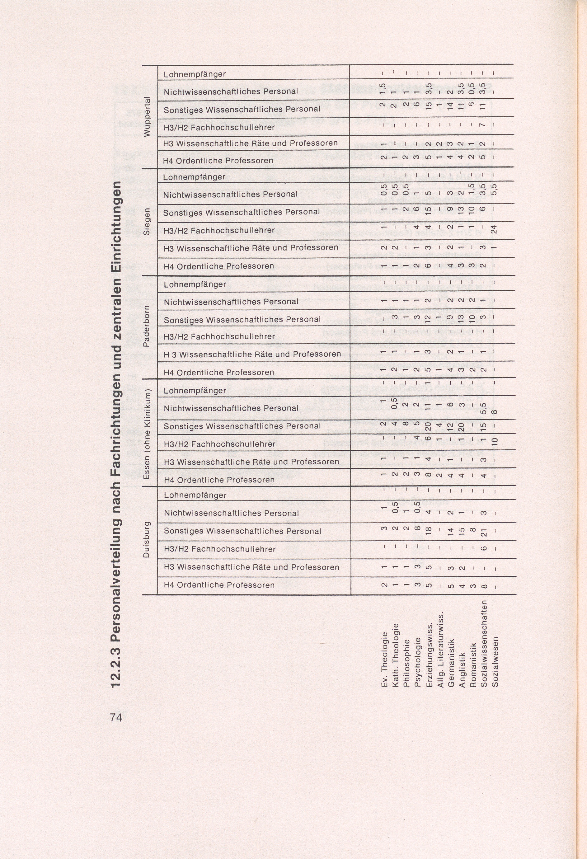 12.2.3 Personalverteilung nach Fachrichtungen und zentralen Einrichtungen