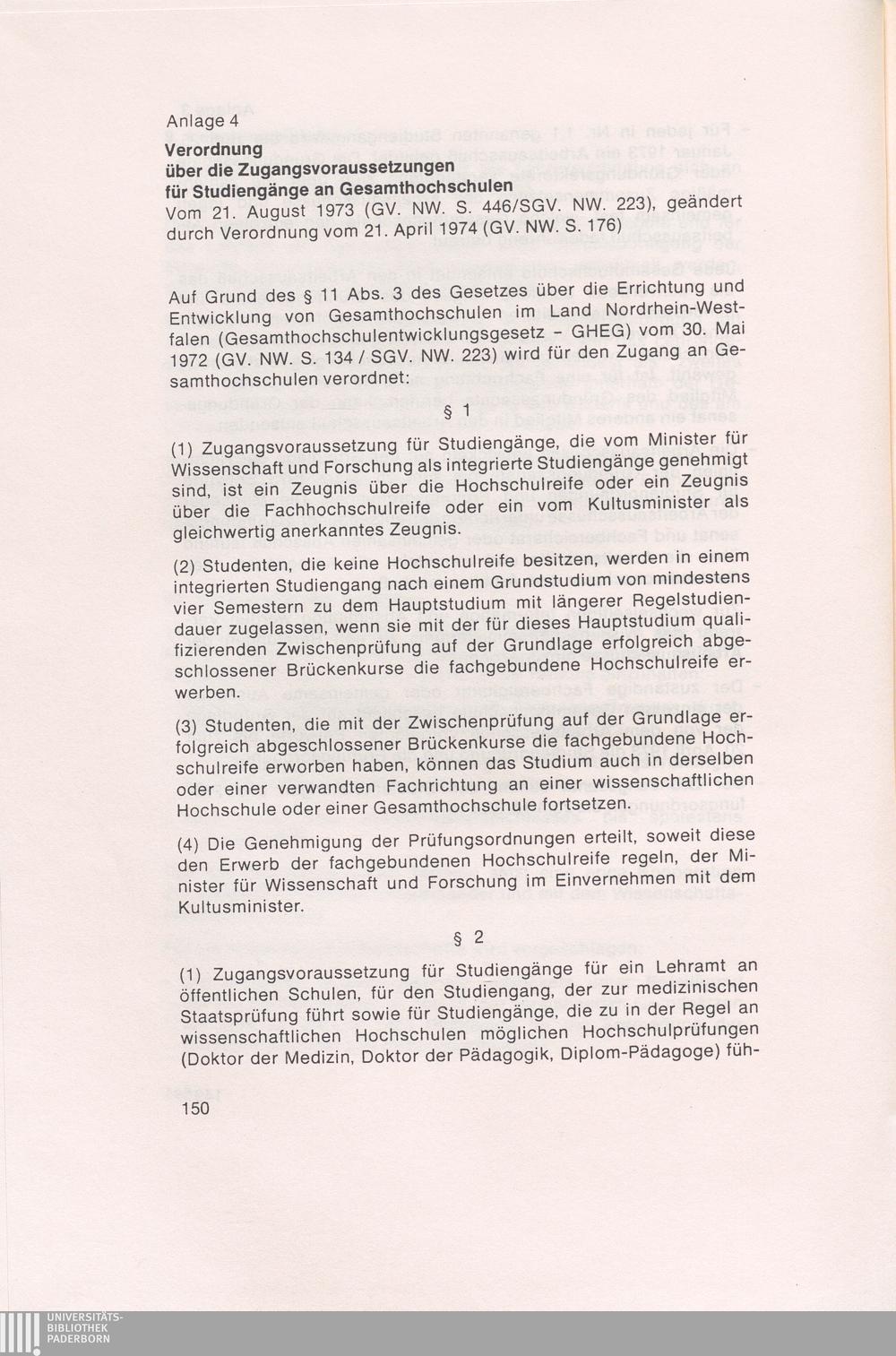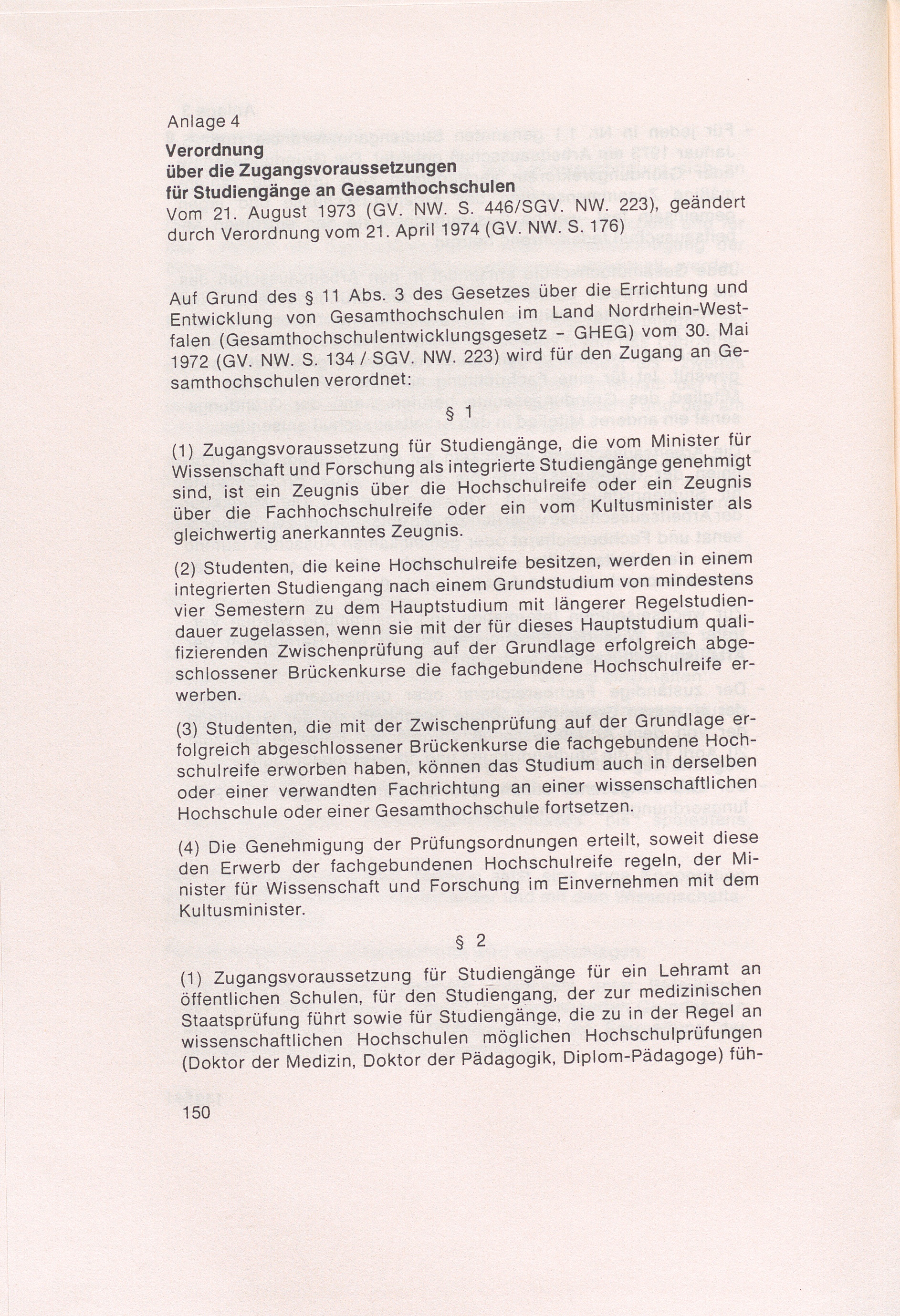 Anlage 4: Verordnung über die Zugangsvoraussetzungen für Studiengänge an Gesamthochschulen[...]