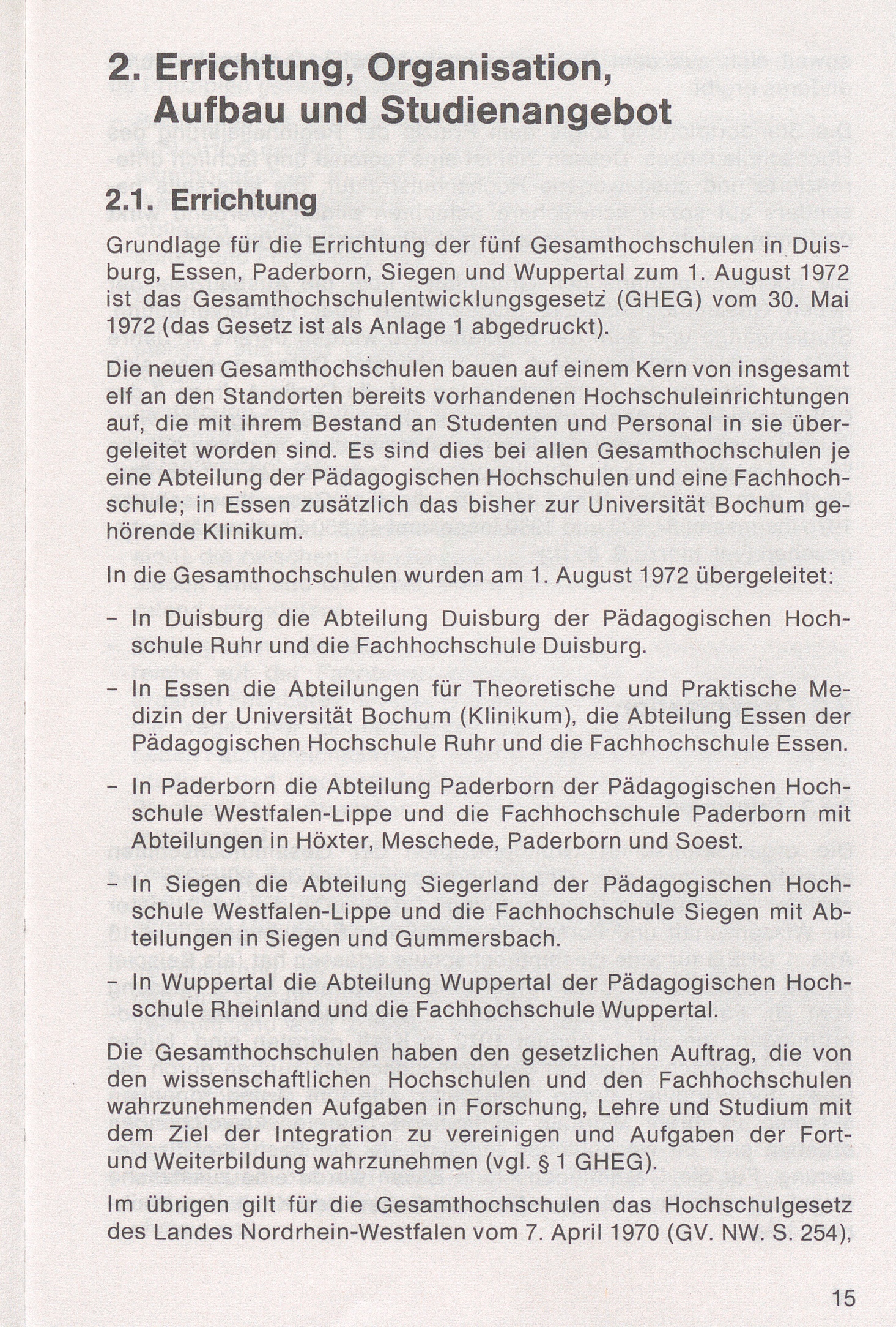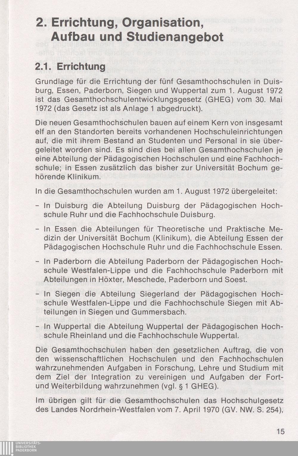 Gesamthochschulen in Nordrhein-Westfalen : Materialien zu Aufbau, Entwicklung und Funktion / Der Minister für Wissenschaft und Forschung des Landes Nordrhein-Westfalen