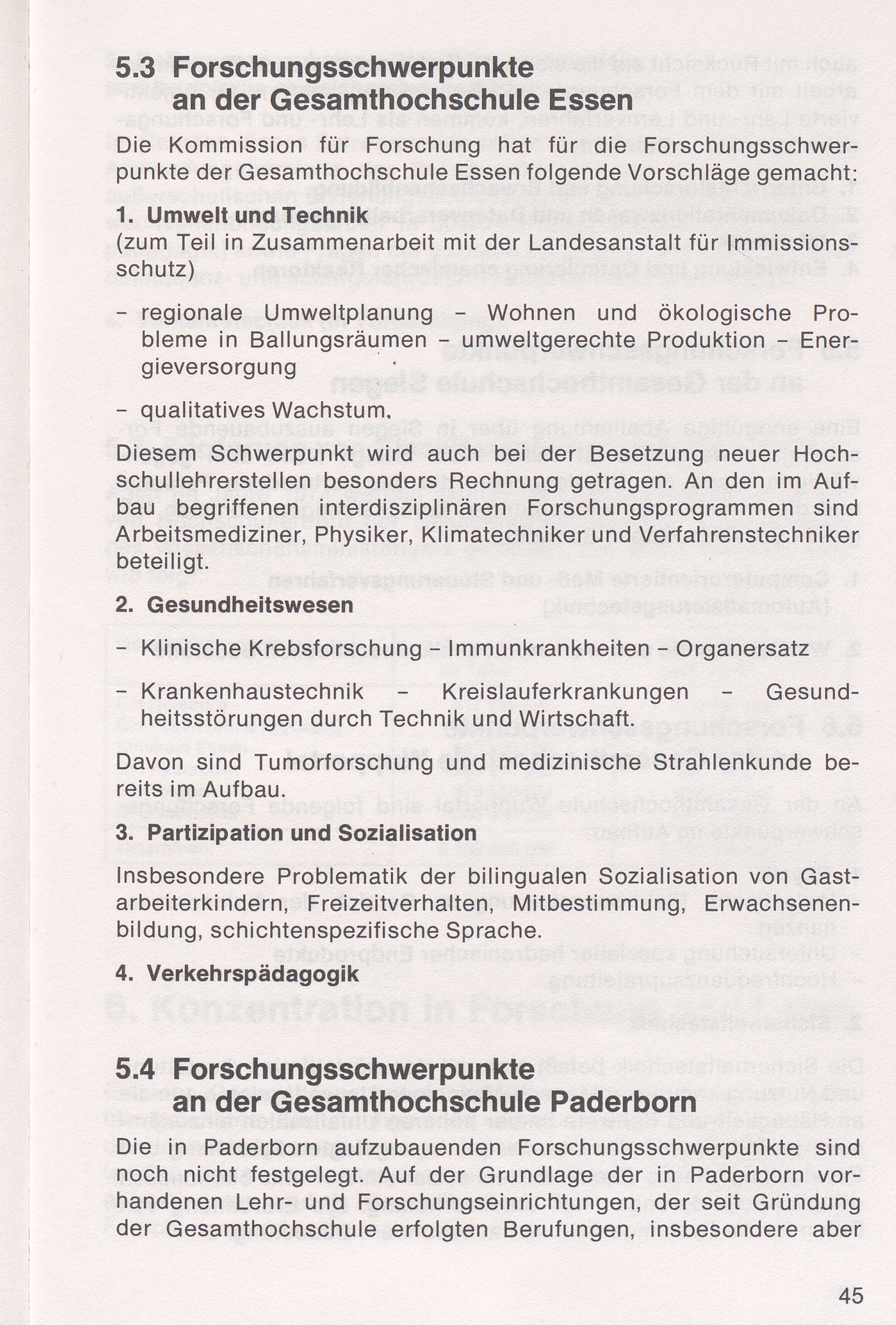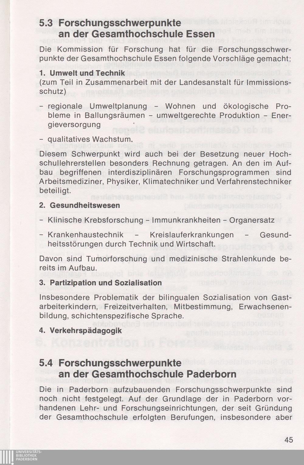 5.4 Forschungsschwerpunkte an der Gesamthochschule Paderborn