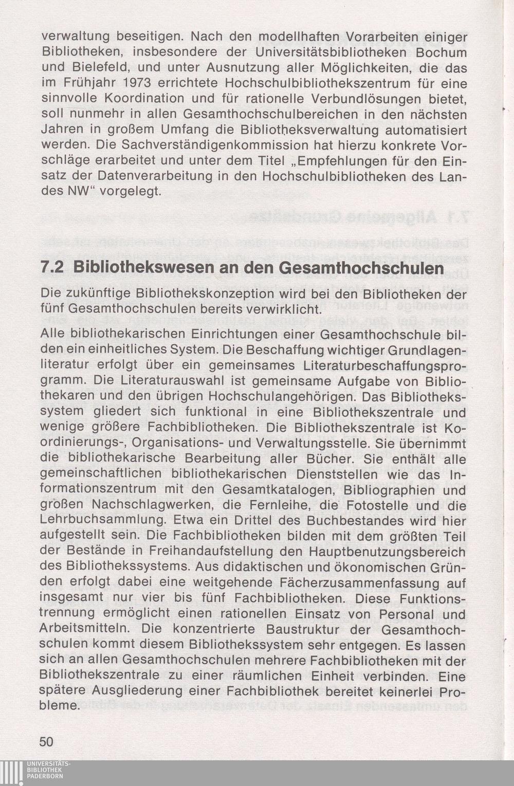7.2 Bibliothekswesen an den Gesamthochschulen