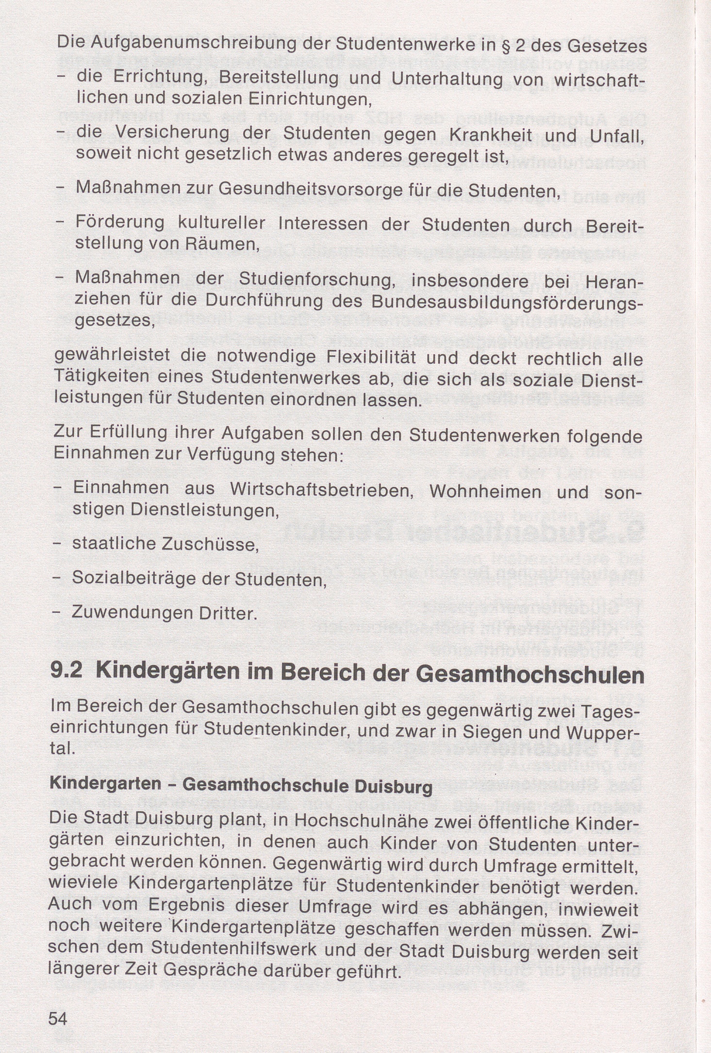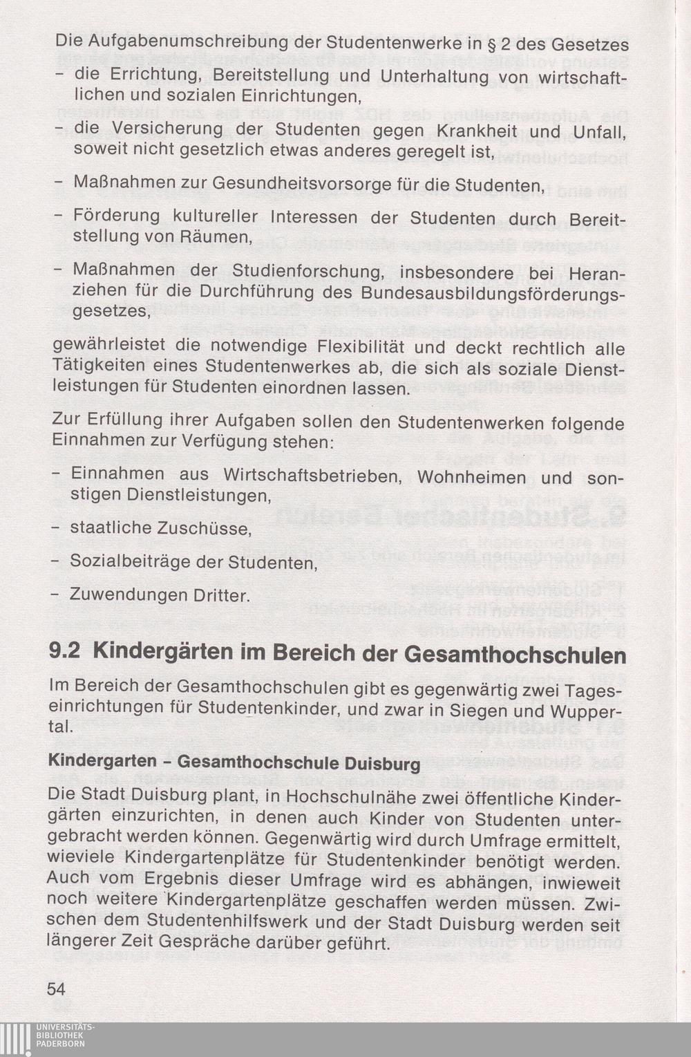 9.2 Kindergärten im Bereich der Gesamthochschulen