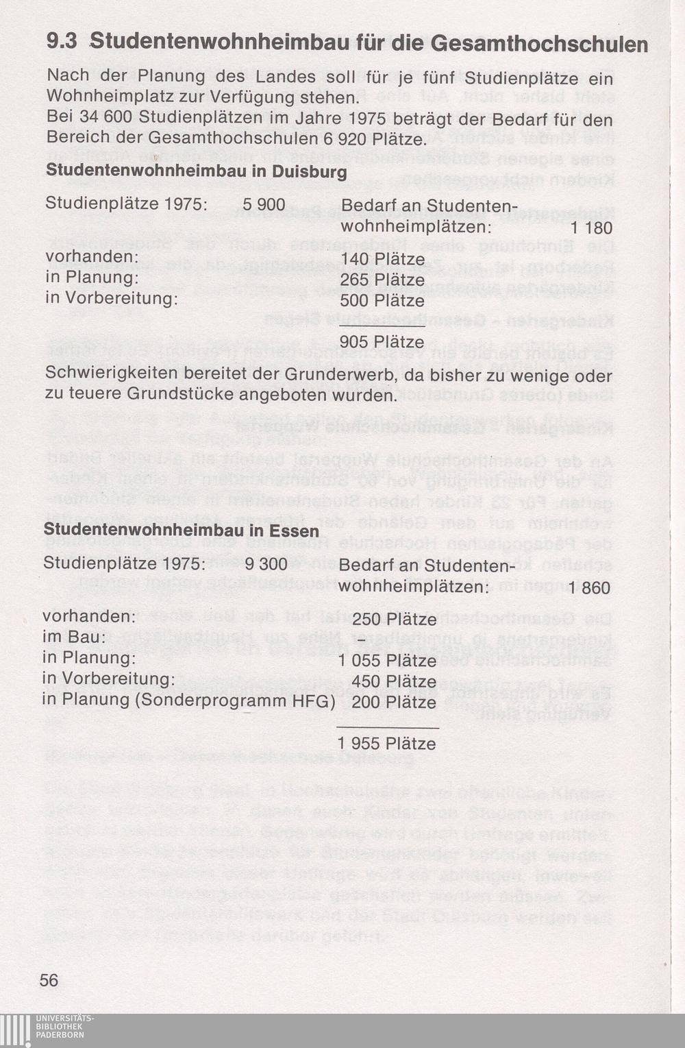 9.3 Studentenwohnheimbau für die Gesamthochschulen