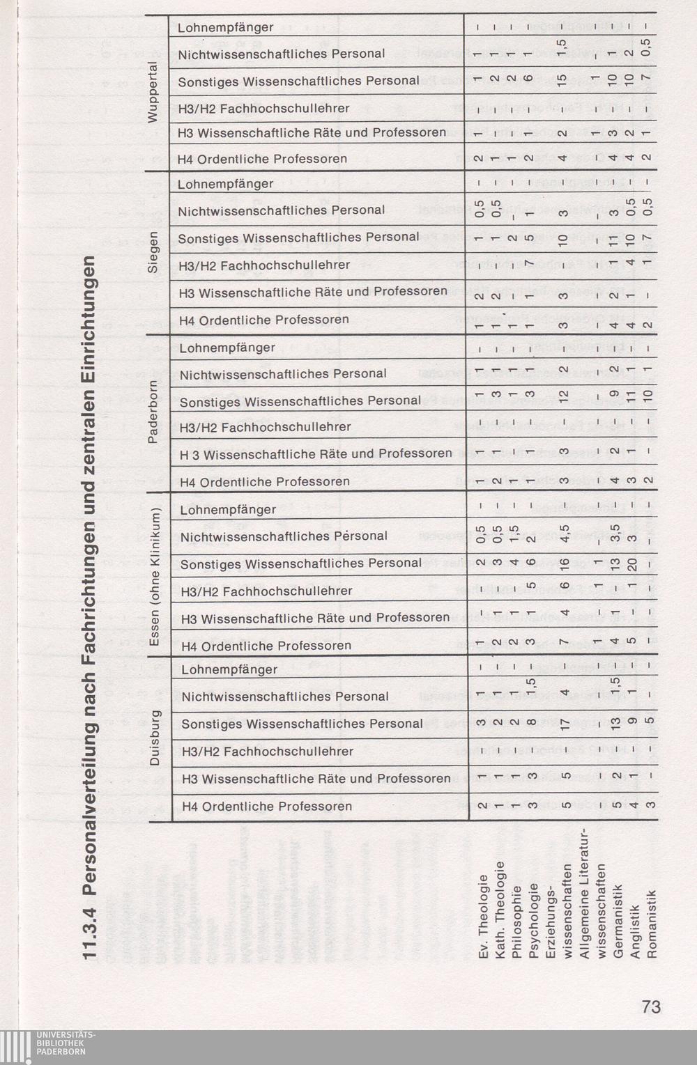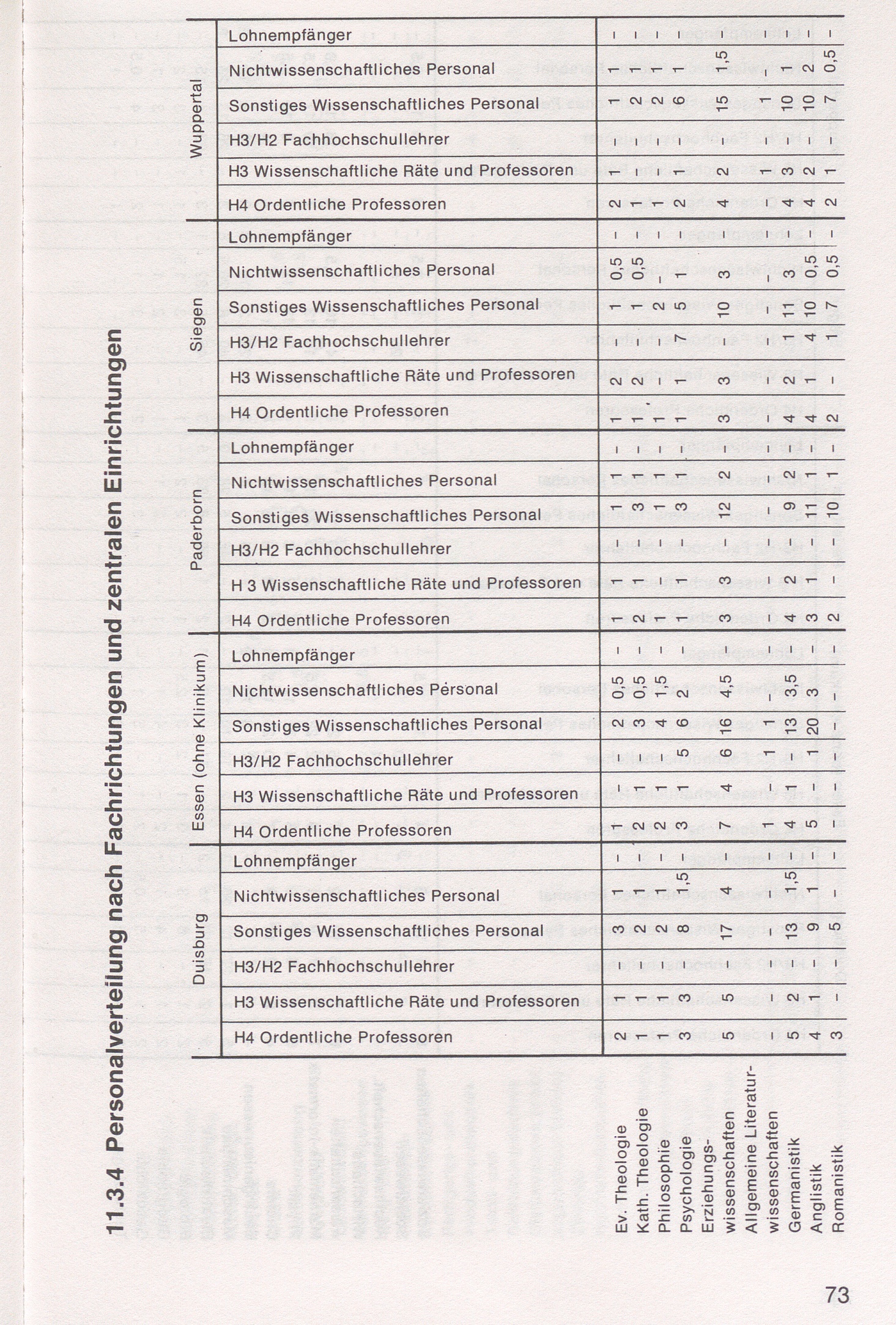 11.3.4 Personalverteilung nach Fachrichtungen und zentralen Einrichtungen