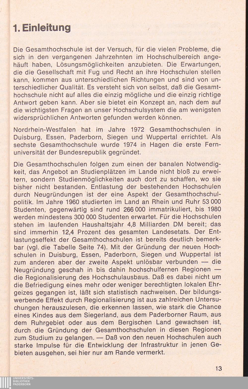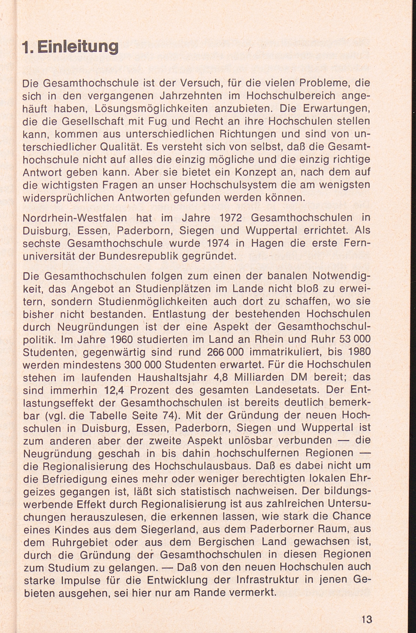 Gesamthochschulen in Nordrhein-Westfalen : Materialien zu Aufbau, Entwicklung und Funktion / Der Minister für Wissenschaft und Forschung des Landes Nordrhein-Westfalen